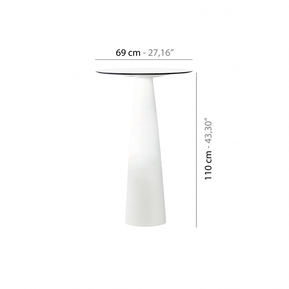Hoplà table with polyethylene base and HPL top, 110 cm high and 69 cm in diameter. Simple yet impactful, Hoplà combines modern design with a minimalist touch, to create a table of pure geometric perfection. The base is conical, the top circular and together they achieve a pleasant balance that blends with any furnishing context. Stunning in a trendy place or in an intimate and welcoming garden, this table is available in sparkling colours. Designed by Marc Sadler for Slide.