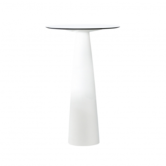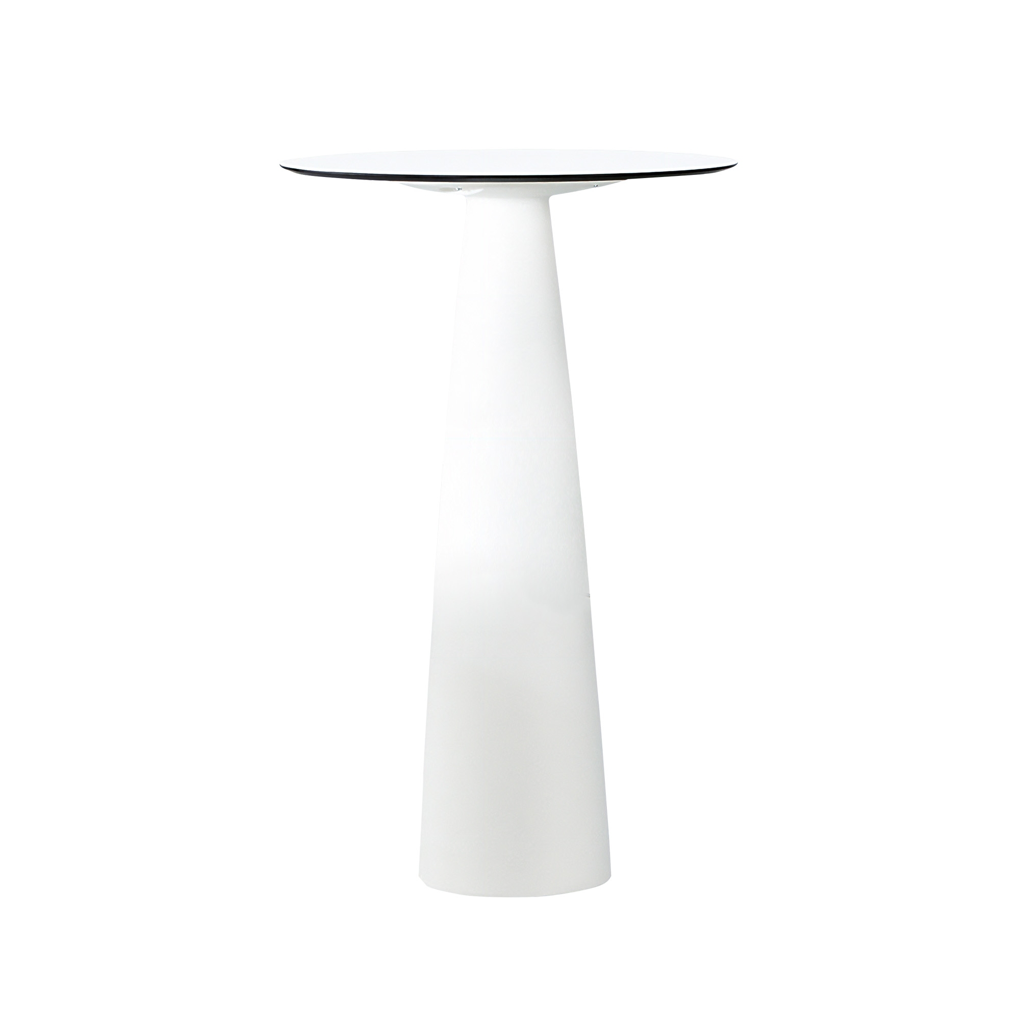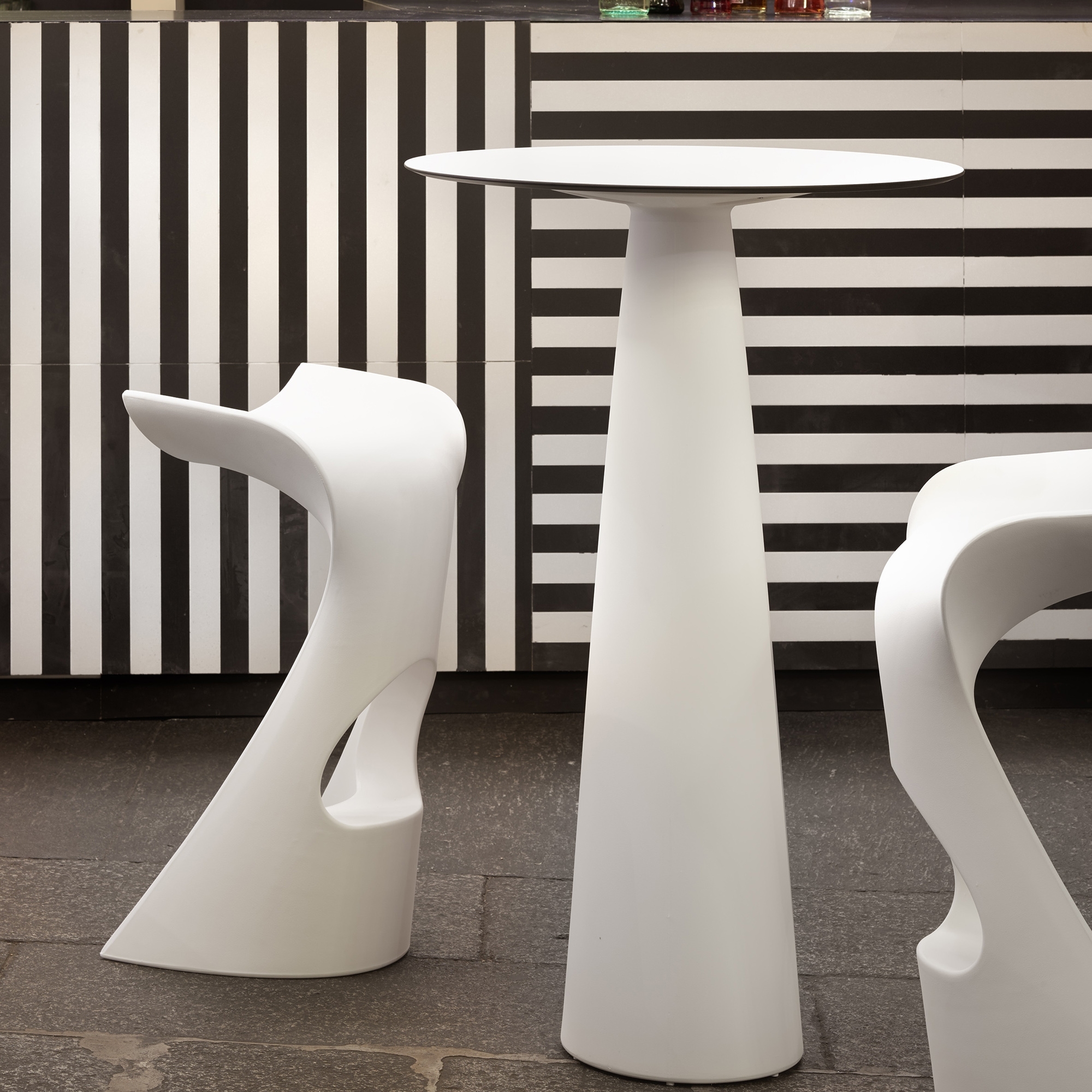 Hoplà table with polyethylene base and HPL top, 110 cm high and 69 cm in diameter. Simple yet impactful, Hoplà combines modern design with a minimalist touch, to create a table of pure geometric perfection. The base is conical, the top circular and together they achieve a pleasant balance that blends with any furnishing context. Stunning in a trendy place or in an intimate and welcoming garden, this table is available in sparkling colours. Designed by Marc Sadler for Slide.