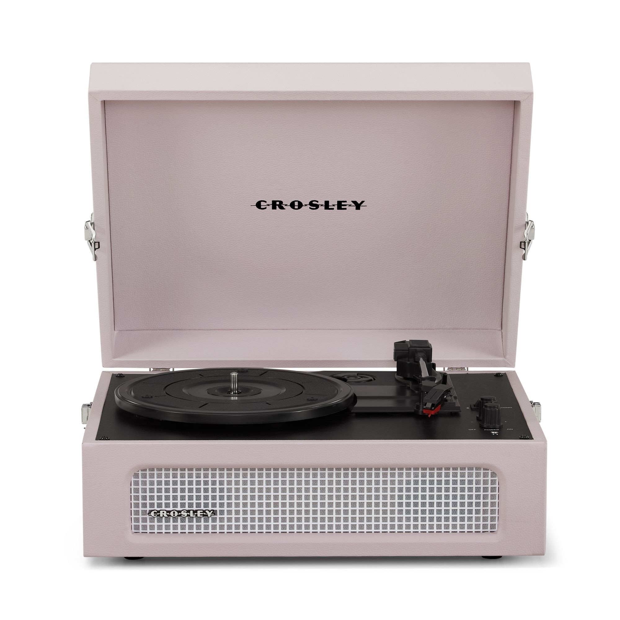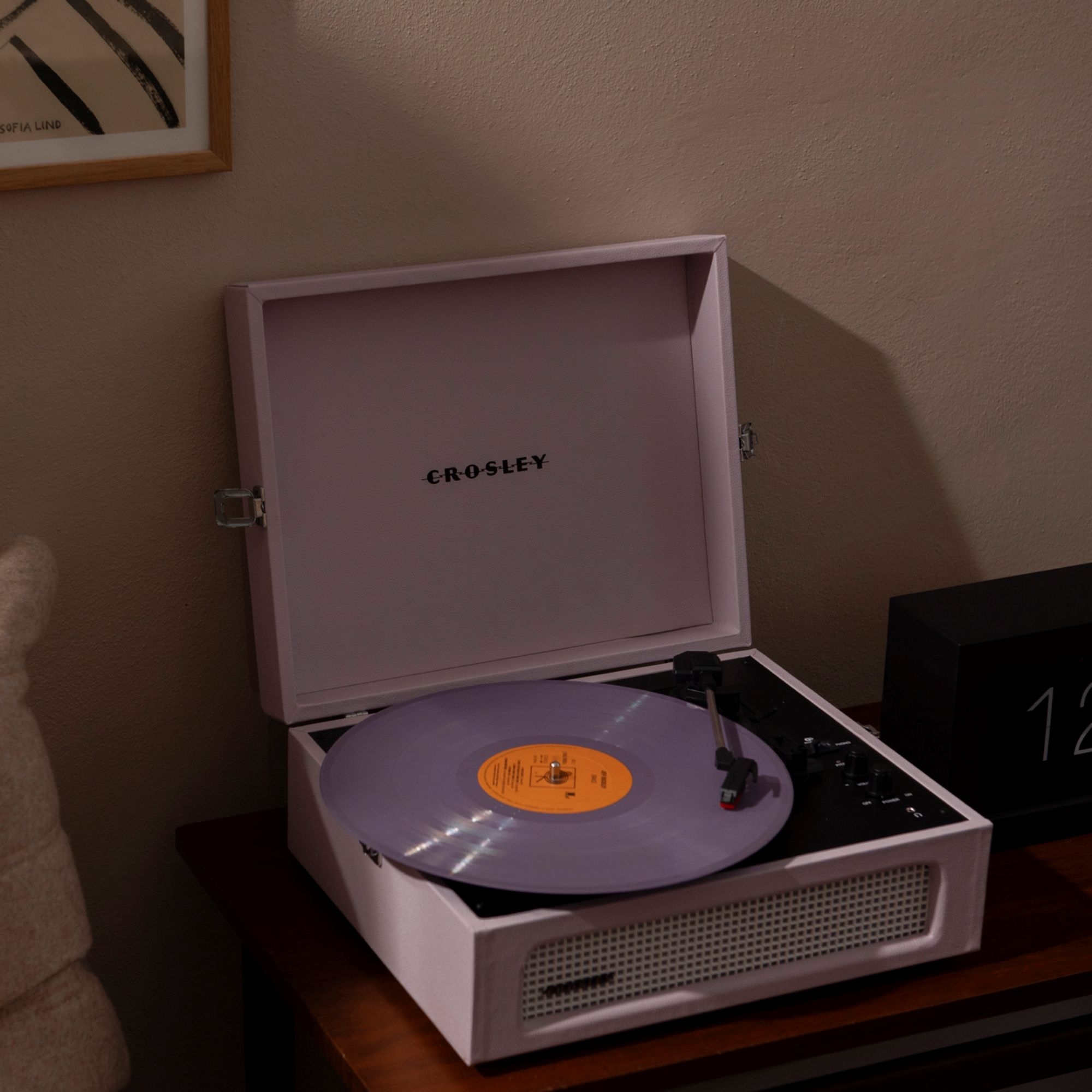Bluetooth Voyager turntable available in various colors. Voyager is a vinyl record player that connects wirelessly to external devices using Bluetooth technology. It is equipped with a high-quality audio transmission system that reproduces music clearly and faithfully to the original. It also features a sleek, modern design, with a wooden base and glass lid. Voyager is easy to use and includes a handy autoplay feature. It's also compatible with most Bluetooth devices, such as smartphones, tablets, and wireless speakers. Made by Crosley