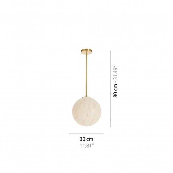 Slide design studio leaves its signature in an outstandingly evocative collection: Mineral Tige. A lamp which is a luminous sphere with a marble effect which recalls the lunar crater. A simple concept behind this wonderful piece: a light point of enchanting beauty which brings to mind an ancient and fascinating material, natural marble, exalted in all its preciousness but made contemporary by the plastic materials used without sacrificing quality, such as polyethylene. Its curved shape allows the light to be diffused in a beautiful and delicate way. For extra luxury, the stem is made of satin brass. E27 bulb connection (1x 15W). Perfect in different contexts, Mineral Tige will leave an unforgettable emotion. Bring a touch of extraordinary beauty to your interior: choose lamps from the Mineral Tige collection! Take a look at our gorgeous Slide items here, on Newpop.it!