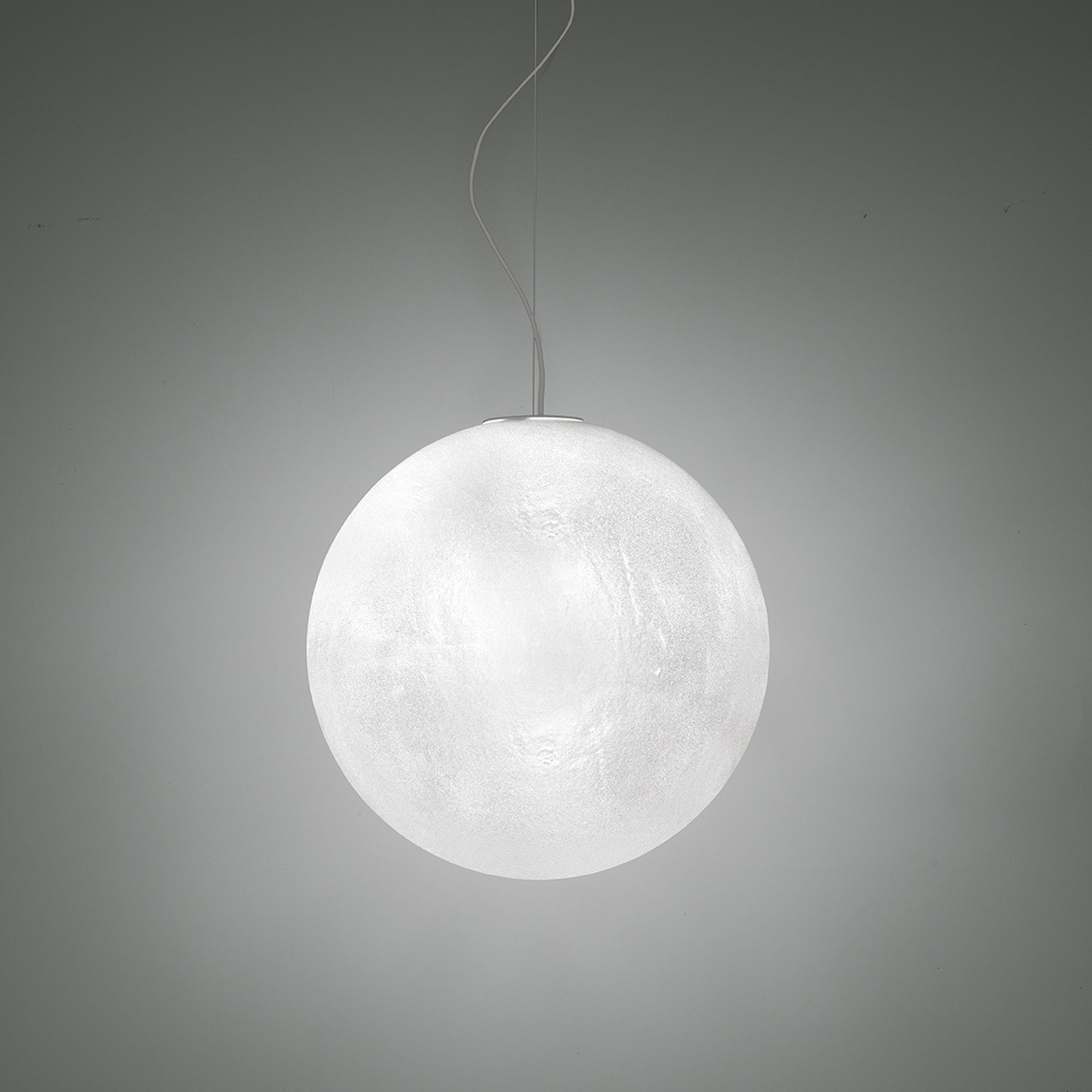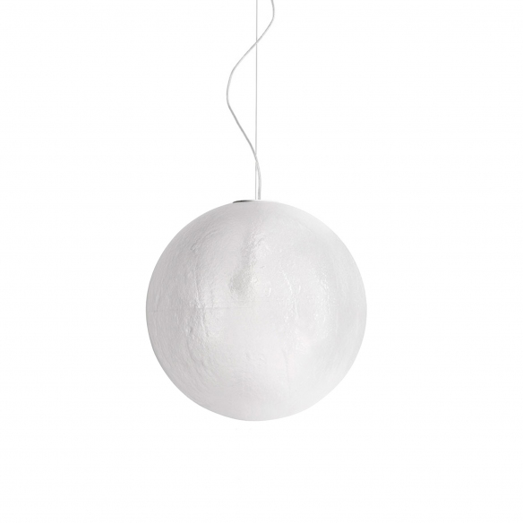 Polyethylene suspension lamp from Murano collection, 40 cm in diameter. An ethereal and delicate light point, Murano is a spherical pendant lamp, which recalls the moon, and adds a suggestive beauty to any space. Its materials are contemporary, all you need is a little imagination to light up your interior with a beautiful, warm glow, and create an inviting atmosphere. When it's on it's gorgeous! Murano will definitely be your focal point. Designed and built by Slide.