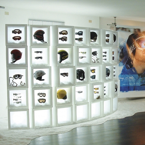Cube 45 modular luminous display unit made of polyethylene. Flexible and versatile, Cube 45 is designed to showcase products and objects effectively. The module is made of high quality, resistant and durable materials, ensuring a long life over time. The Cube 45 modular display is available in different versions, to adapt to the customer's needs. Furthermore, it is possible to customize the display with logo and graphics to increase brand visibility. The mounting system is quick and easy, allowing you to create custom configurations in minutes. Designed by Giò Colonna Romano for Slide.