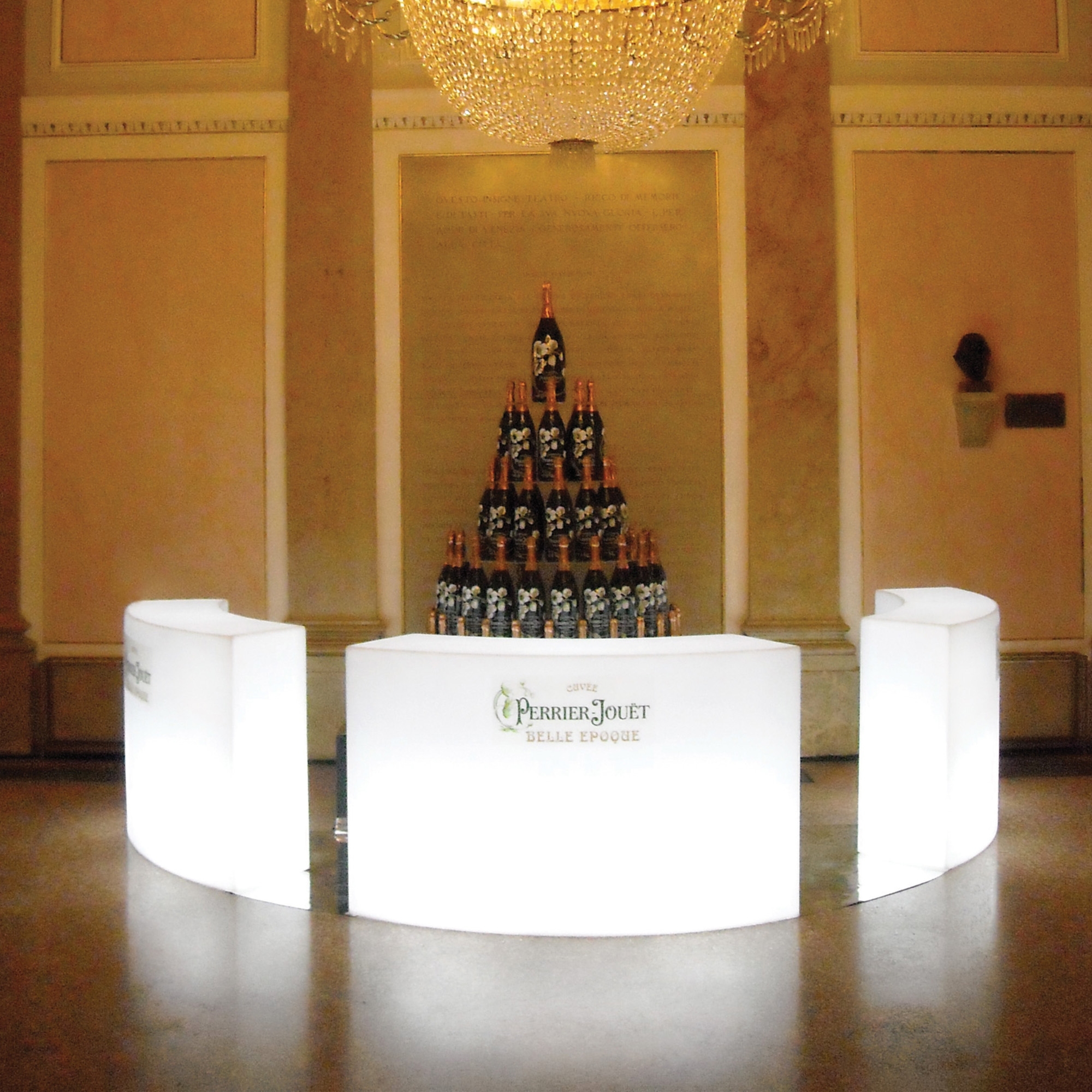 Snack Bar polyethylene light counter from Break Bar collection, 100 cm high. A sophisticated but minimal design, this piece of furniture can be used as an independent unit or combined with other pieces to create a wider and more enchanting system capable of guaranteeing versatility and ductility in any context for furnishings capable of seeing the extraordinary in the ordinary. Designed by Slide Design Studio.