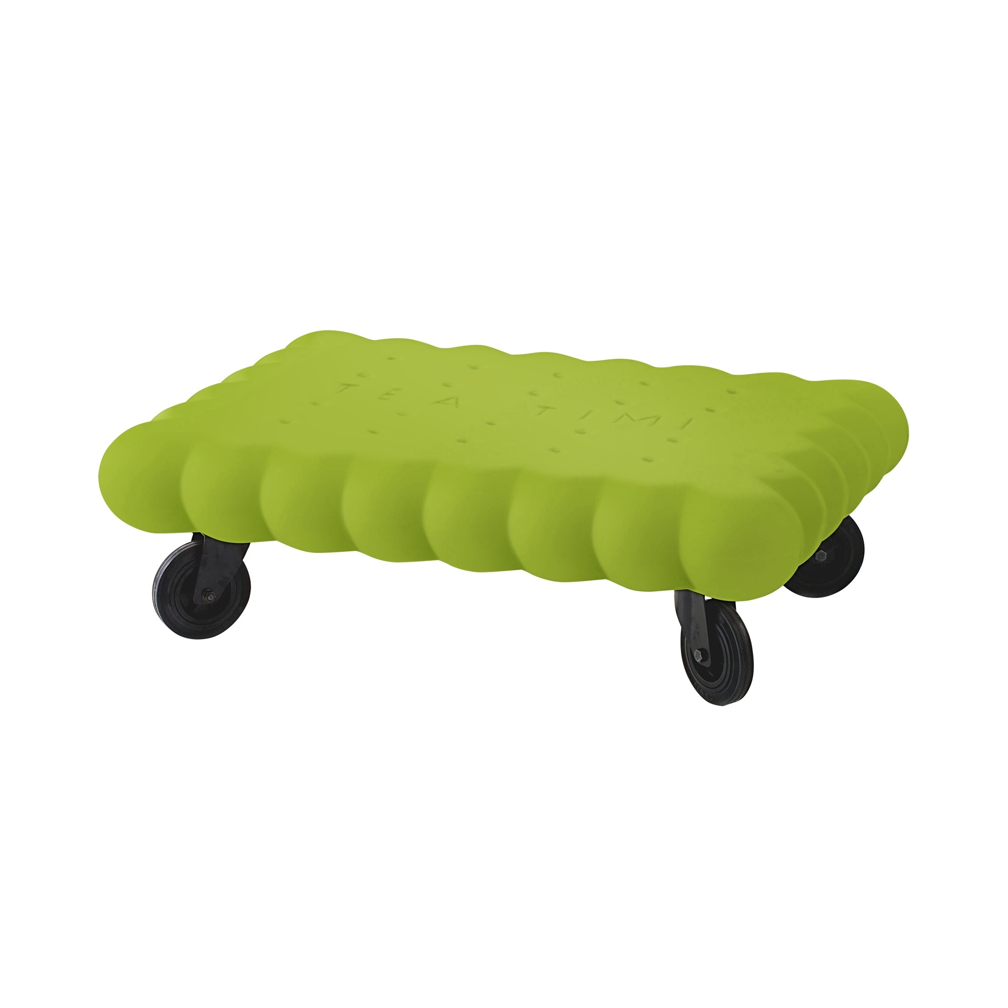 Tea Time polyethylene coffee table with wheels, 100 cm long and 33 cm high. With an unusual graphic aspect, the Tea Time coffee table is a best-seller of the entire Slide catalog. An everyday life object: a huge cookie that rests on 360° rotating wheels to be easily placed in different contexts. Bring creativeness to your environments, choose Tea Time! Designed by Gianni Arnaudo for Slide.