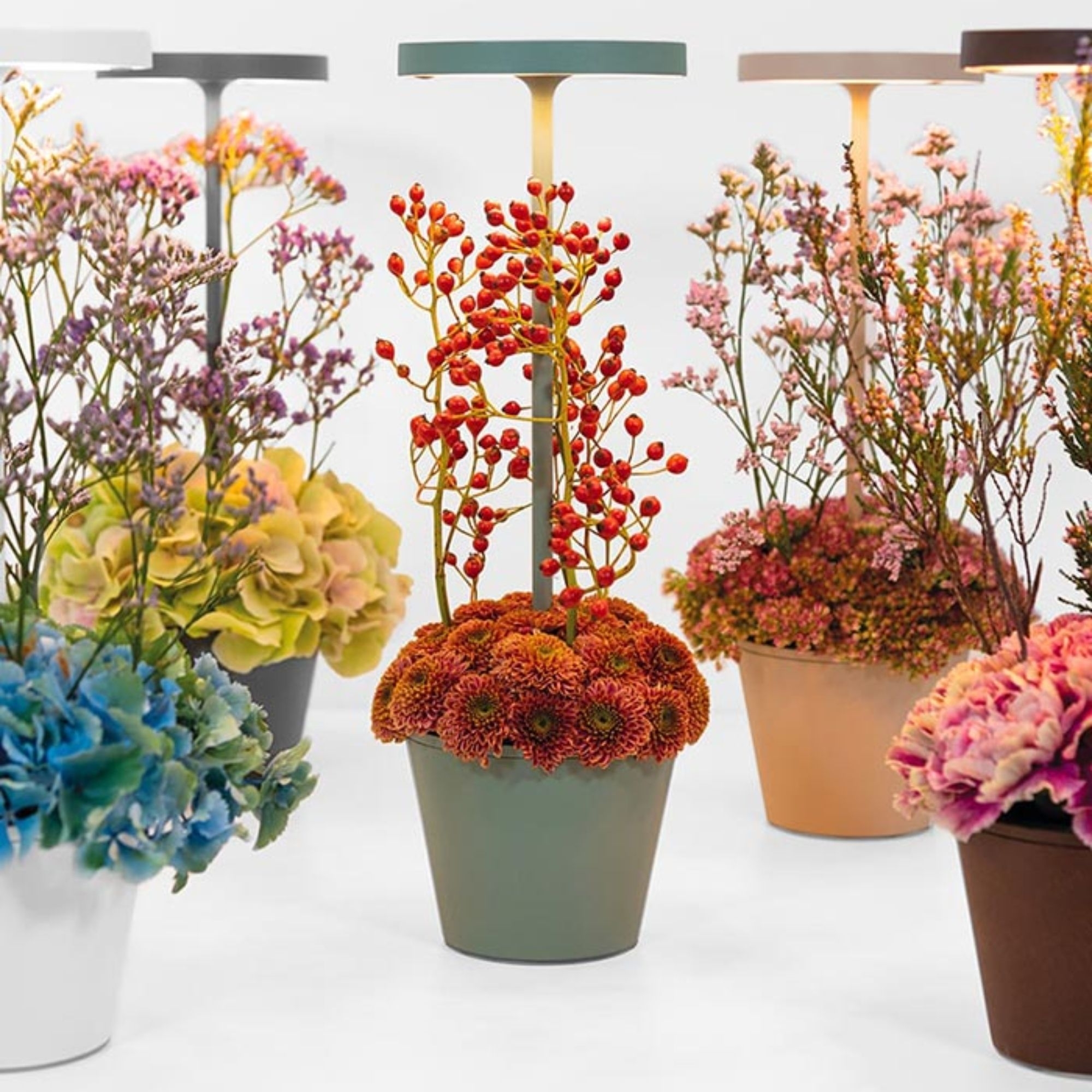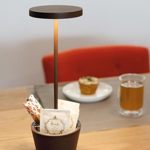 Poldina Pro Reverso rechargeable table lamp with aluminum structure and satin polycarbonate diffuser screen. Available in 5 stunning colors, Poldina Pro Reverso is an innovative interior lighting solution, designed to create a welcoming atmosphere. It's beautifully modern and minimalist, providing outstanding functionality: it can be used both as a table lamp or vase. Adjustable light intensity. Battery life ranging from 8 to 9 hours. Made by Zafferano.