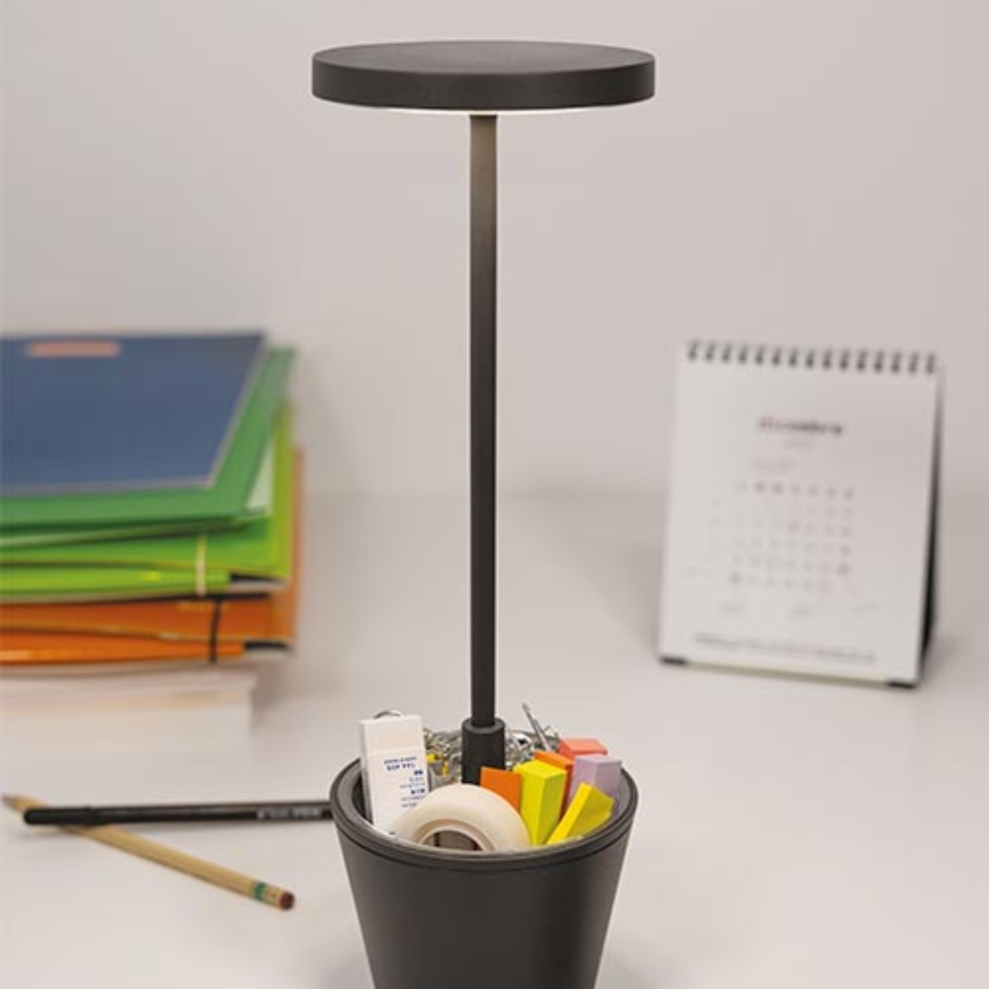 Poldina Pro Reverso rechargeable table lamp with aluminum structure and satin polycarbonate diffuser screen. Available in 5 stunning colors, Poldina Pro Reverso is an innovative interior lighting solution, designed to create a welcoming atmosphere. It's beautifully modern and minimalist, providing outstanding functionality: it can be used both as a table lamp or vase. Adjustable light intensity. Battery life ranging from 8 to 9 hours. Made by Zafferano.