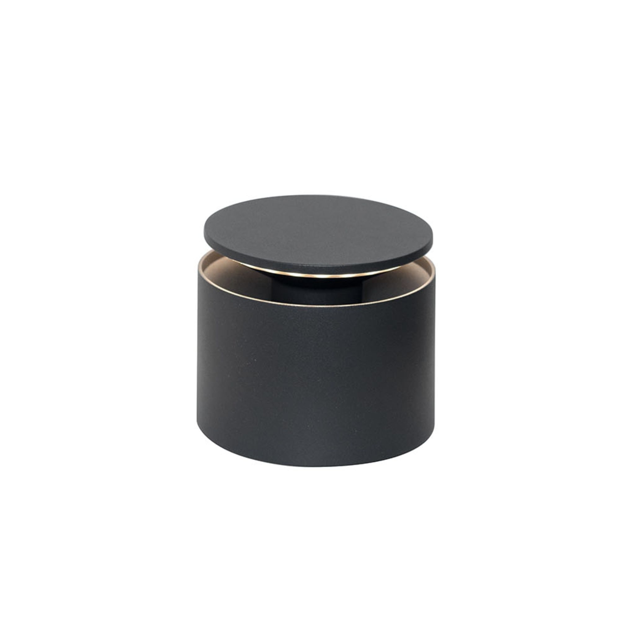 Push-up rechargeable table lamp with aluminum structure and polycarbonate diffuser screen. Available in 4 gorgeous colors, Push-up is a table lamp which stands out from the rest for its outstanding functionality: by touching the top, it opens, turning on; by pressing again it closes, switching off. The base is equipped with a touch control which allows it to be switched off or adjust the light intensity by ranging between 2200K, 2700K and 3000K. This lamp comes with a contact charging base. Made by Zafferano.