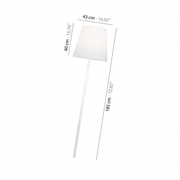 Ali Baba polyethylene torch, 43 cm in diameter and 185 cm high. With simple elegance and clean lines, without frills, Ali Baba is a lamp that illuminates and decorates in a pleasant way. Specifically designed to create ambient lighting in places such as terraces or gardens, this piece of furniture is highly functional and one of a kind, whose peculiarity lies in the large diffuser. Designed by Giò Colonna Romano for Slide.