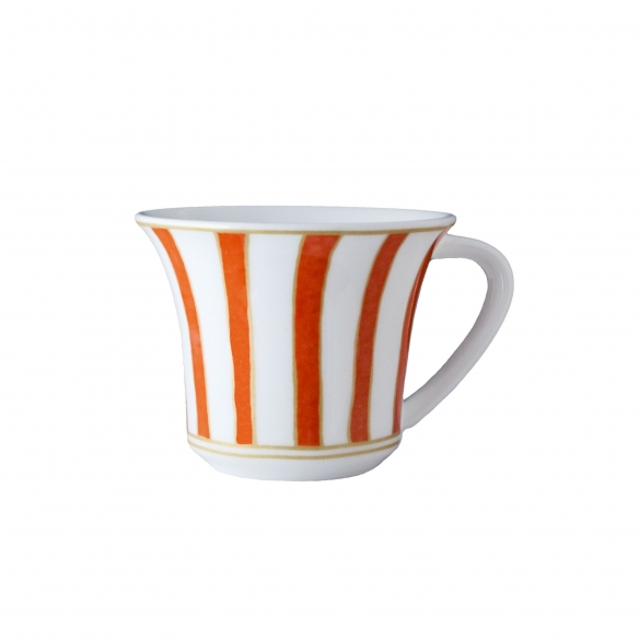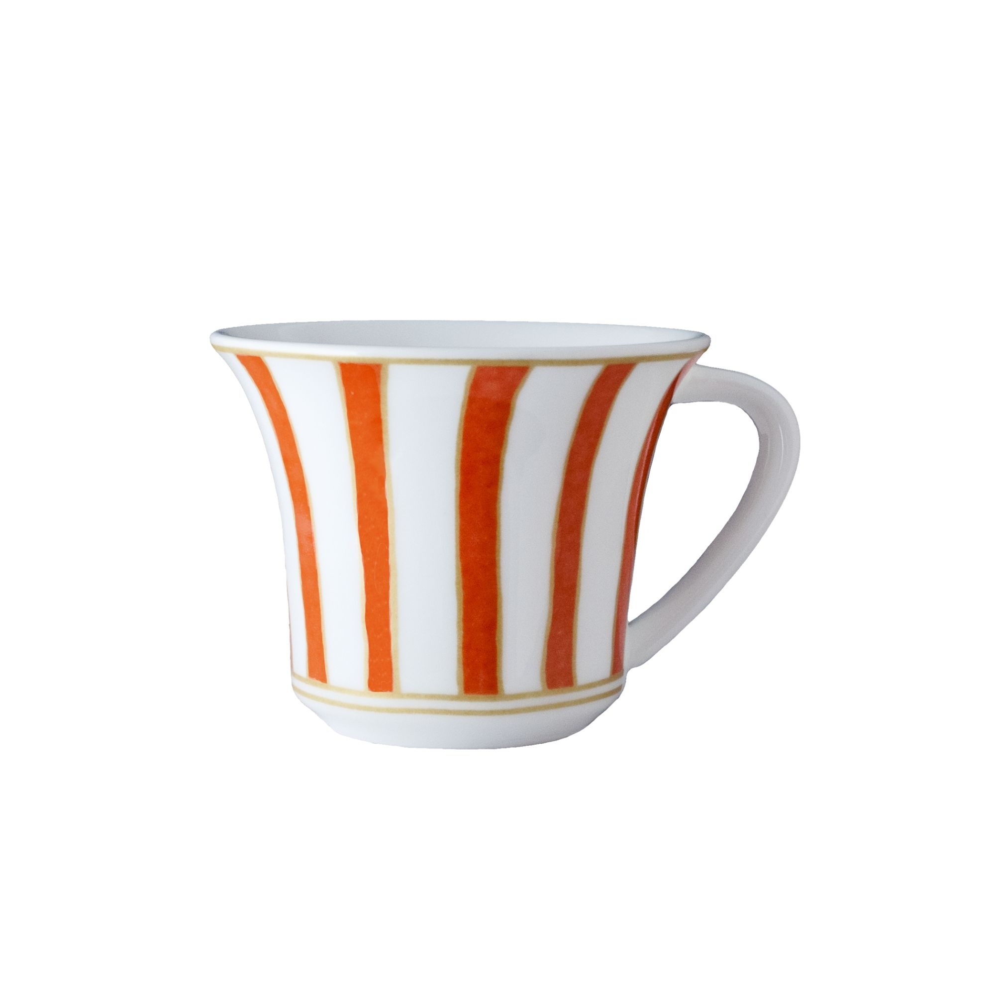 Coffee cup from Striche Arancio e Oro collection. With a capacity of 11 cl, the timeless elegance of this fine white porcelain cup is emphasized by stunning orange and gold details, which make it a unique accessory for those who appreciate the beauty of everyday moments. Designed and manifactured by Geminiano Cozzi Venice 1765.