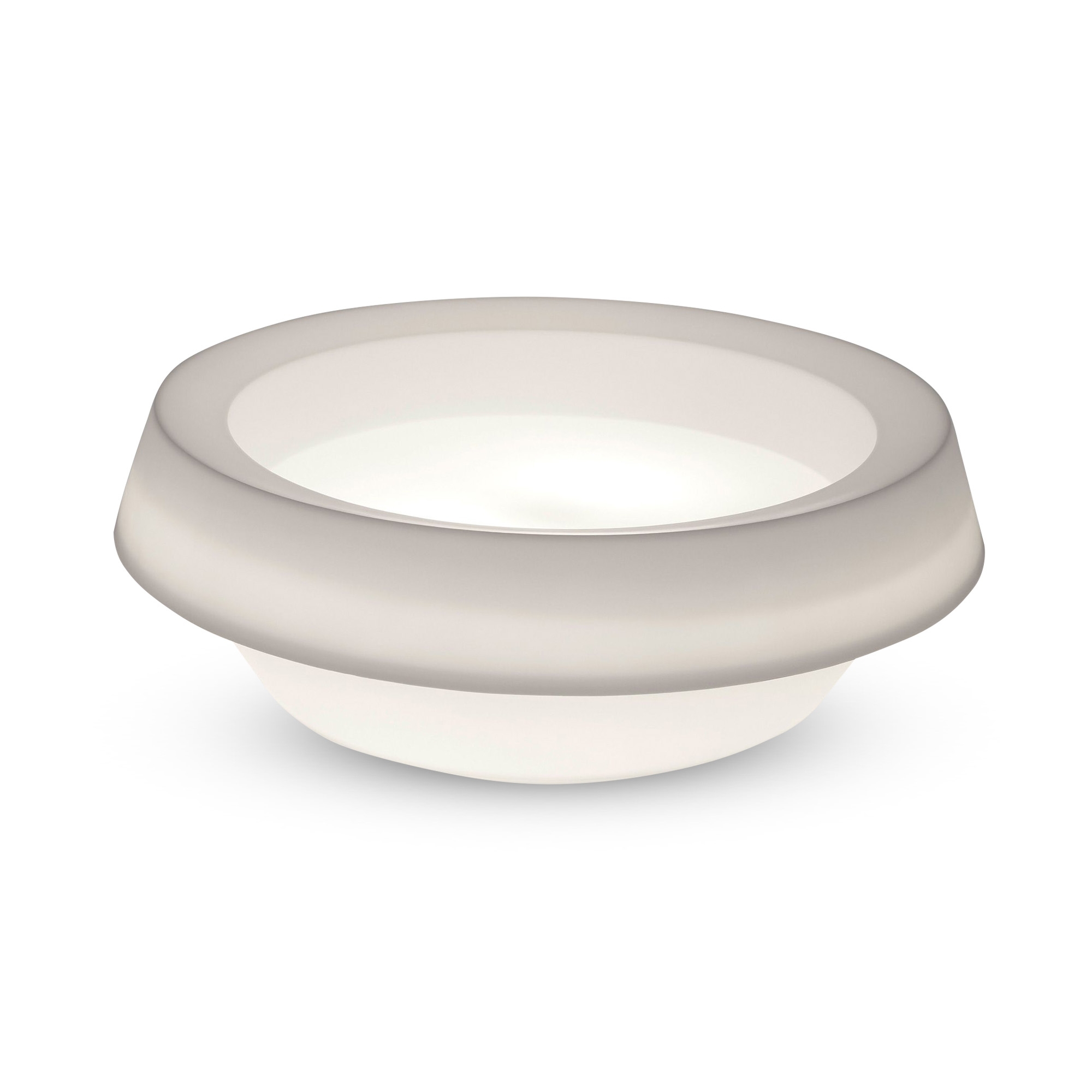 Giò Piatto polyethylene light vase, 210 cm in diameter and 55 cm high. With its large round shape and simple elegance, this light vase embodies the essence of modern design. Perfect for decorating and illuminating outdoor spaces as well as contemporary indoor environments. Designed by Giò Colonna Romano for Slide.