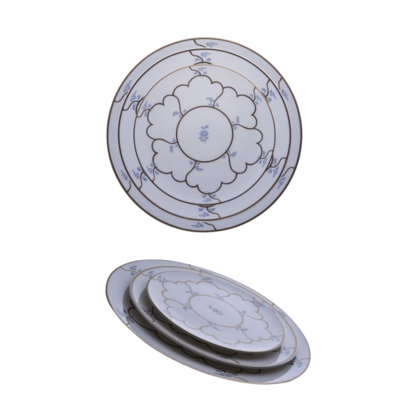 Porcelain plate from Feston and Cadena Azzurro collection, 28 cm. With timeless elegance, this plate is a true gem, which will leave your guests breathless for its stunning gold and blue details, as well as for its pure white porcelain, bringing a classy twist on your table. Perfect on special events, such as weddings or parties, premium quality porcelain ensures that it's easy to clean and withstands daily use. It's the perfect way to delight your guests with your favorite culinary creations. Made by Geminiano Cozzi.