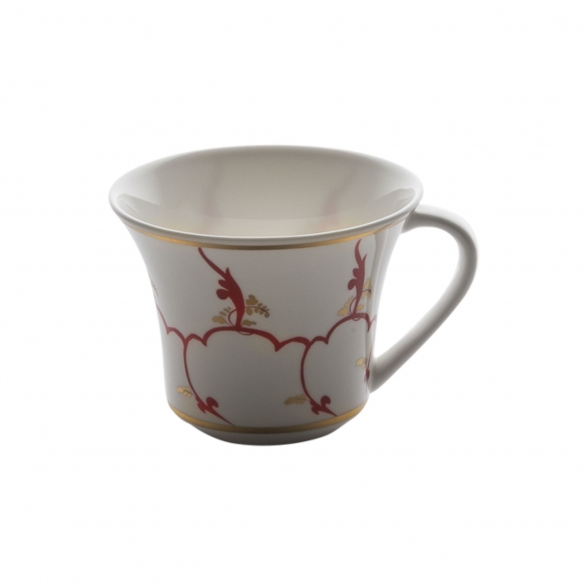 Porcelain espresso cup from Feston and Cadena Rosso line, 11 cl. With timeless elegance, this espresso cup is perfect on special events. Its sparkling red details, along with golden chains and festoons, bring class and finesse to your table. Its unique design, as well as its stunning porcelain, makes it perfect for your coffee break. Its beautiful shades will catch the eye and leave your guests breathless. Made by Geminiano Cozzi.