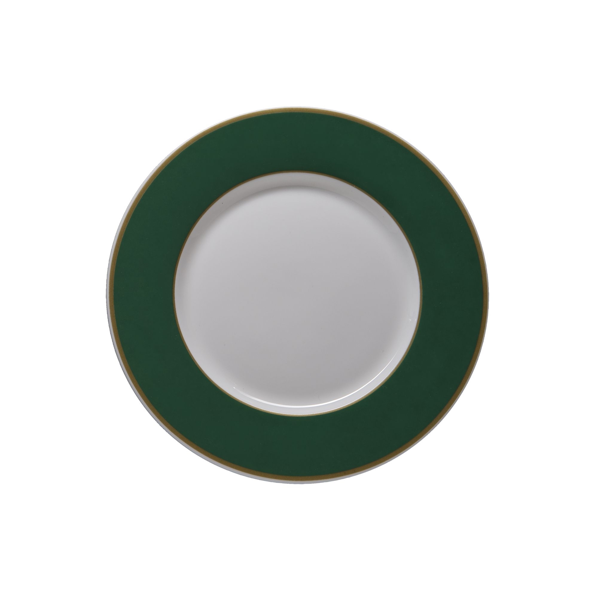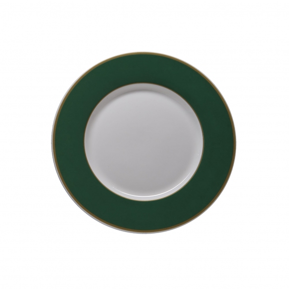 B&B saucer from Striche Verdi e Oro collection, 17.5 cm in diameter. Crafted from the finest white porcelain, this saucer is a stunning way to serve butter or bread on formal occasions or special events. Perfect for a classy mise en place, this accessory completes a unique set. Designed and manufactured by Geminiano Cozzi Venice 1765.