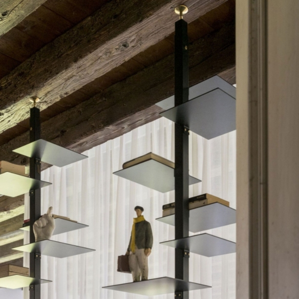 Refined, elegant and impressive, Adelaide bookcase is a true piece of craftsmanship, which defines the simplicity and luxury of a complement that is as charming as it is functional. It is perfect for being the strong point of any room's decor and for personalizing it in many different ways: magnificent for displaying books or for tidily storing various objects or your dearest memories; it is also an unusual dividing element that will allow you to organize your living space, creating cozy and welcoming corners where you can pleasantly while away the time. It is beautiful and modern, and develops along a revolving vertical axis, designed to be fixed to the ceiling (ceiling height from 236 to 302 cm), with convenient shelves that vary in length and width (20x30 cm and 25x30 cm). His artist, Claudio Bitetto, with his characteristic attention to the development of design, creates high-impact pieces that enchant for their originality. His creations are born from the charm of shapes and materials, but also from an innate aesthetic and functional sense: each element is a balance between art and rationality, between elegance and uniqueness. Take a look at our exclusive Mogg items here, on Newpop.it!