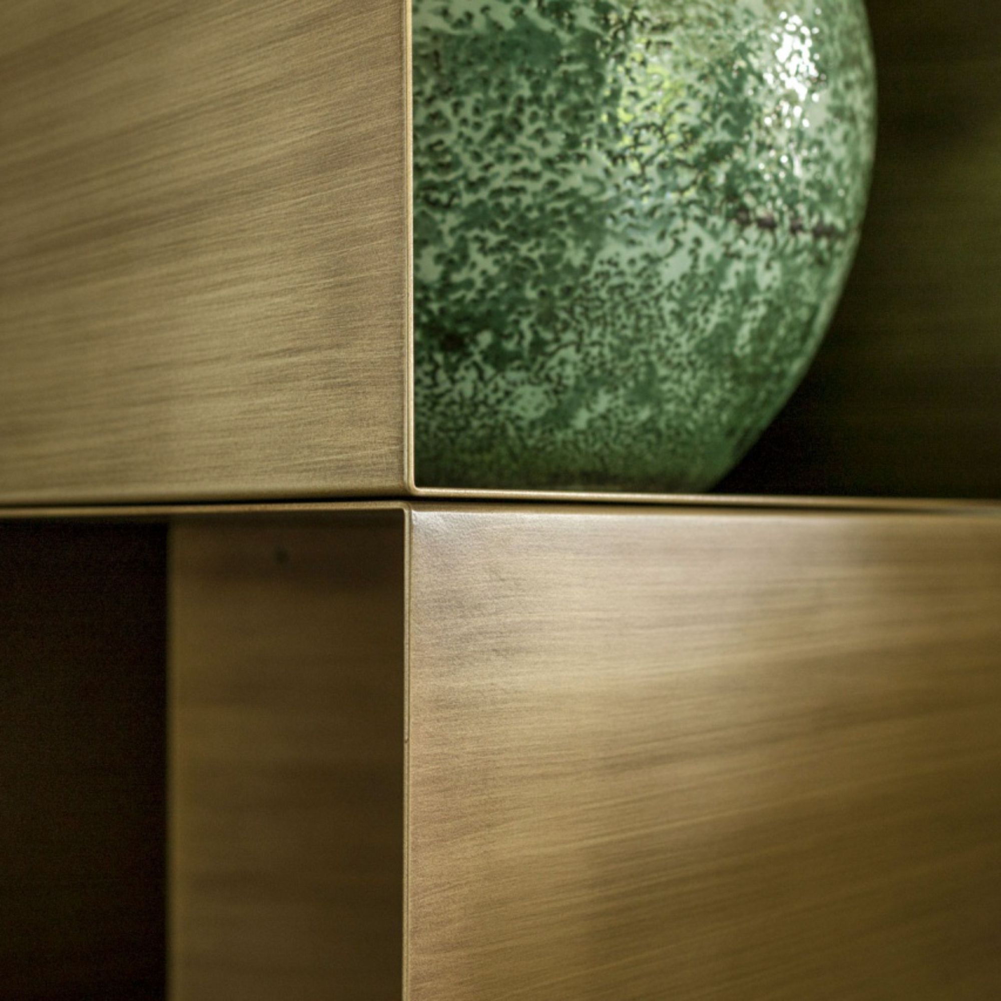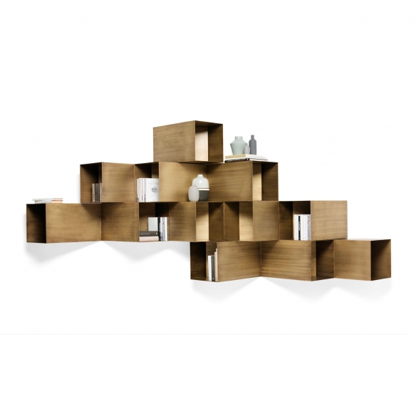 Cellula painted metal wall unit, 103 cm long and 35 cm high. Modern and linear, Cellula is a versatile and functional furnishing solution, available in two different finishes: patinated bronze and burnished. The modular structure allows you to arrange it according to your needs, turning it 180° and fixing it to the left or right. The magnetic door kit can be purchased separately to add finesse to a beautiful design. Designed by StudioPang for Mogg.