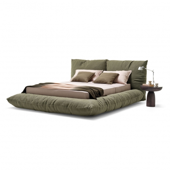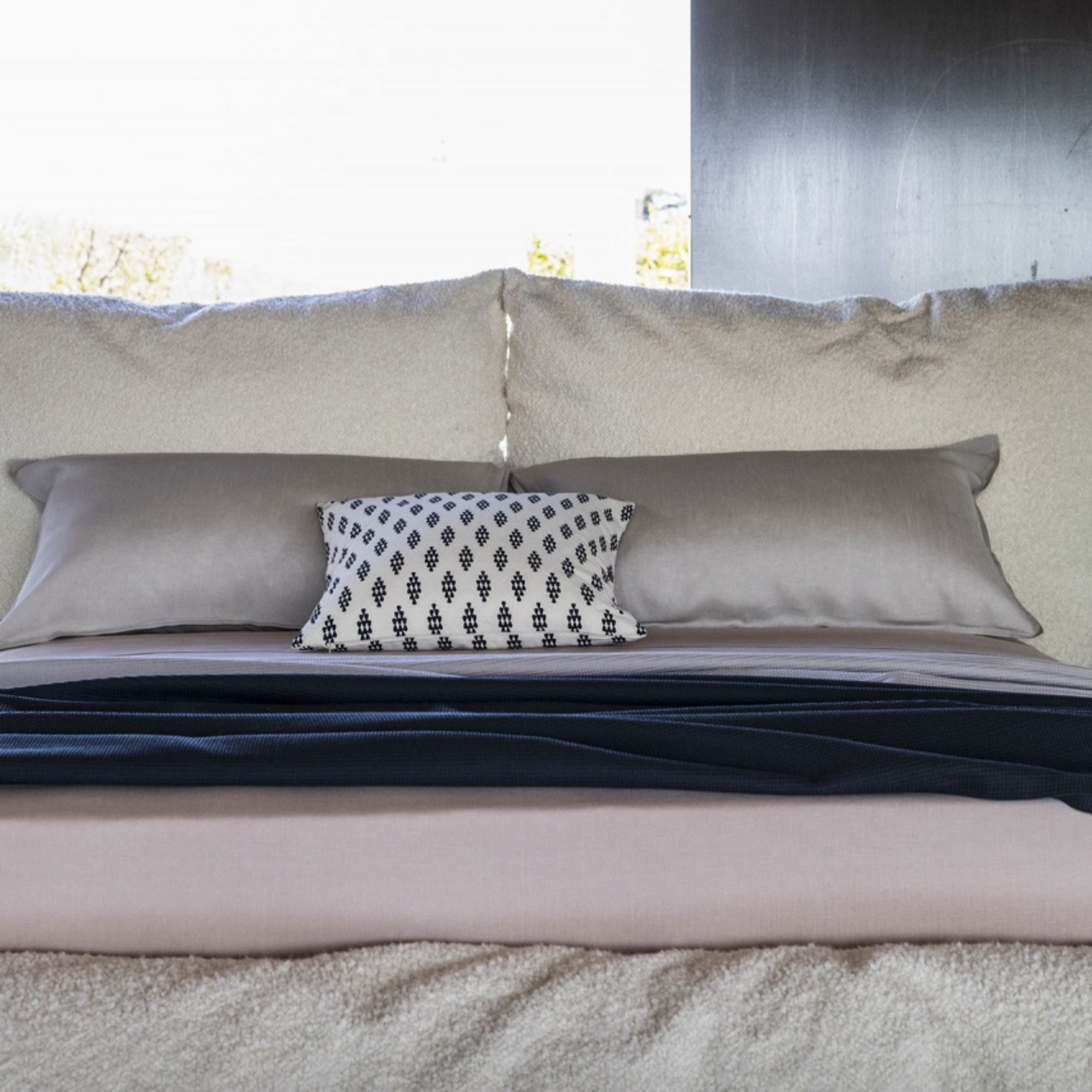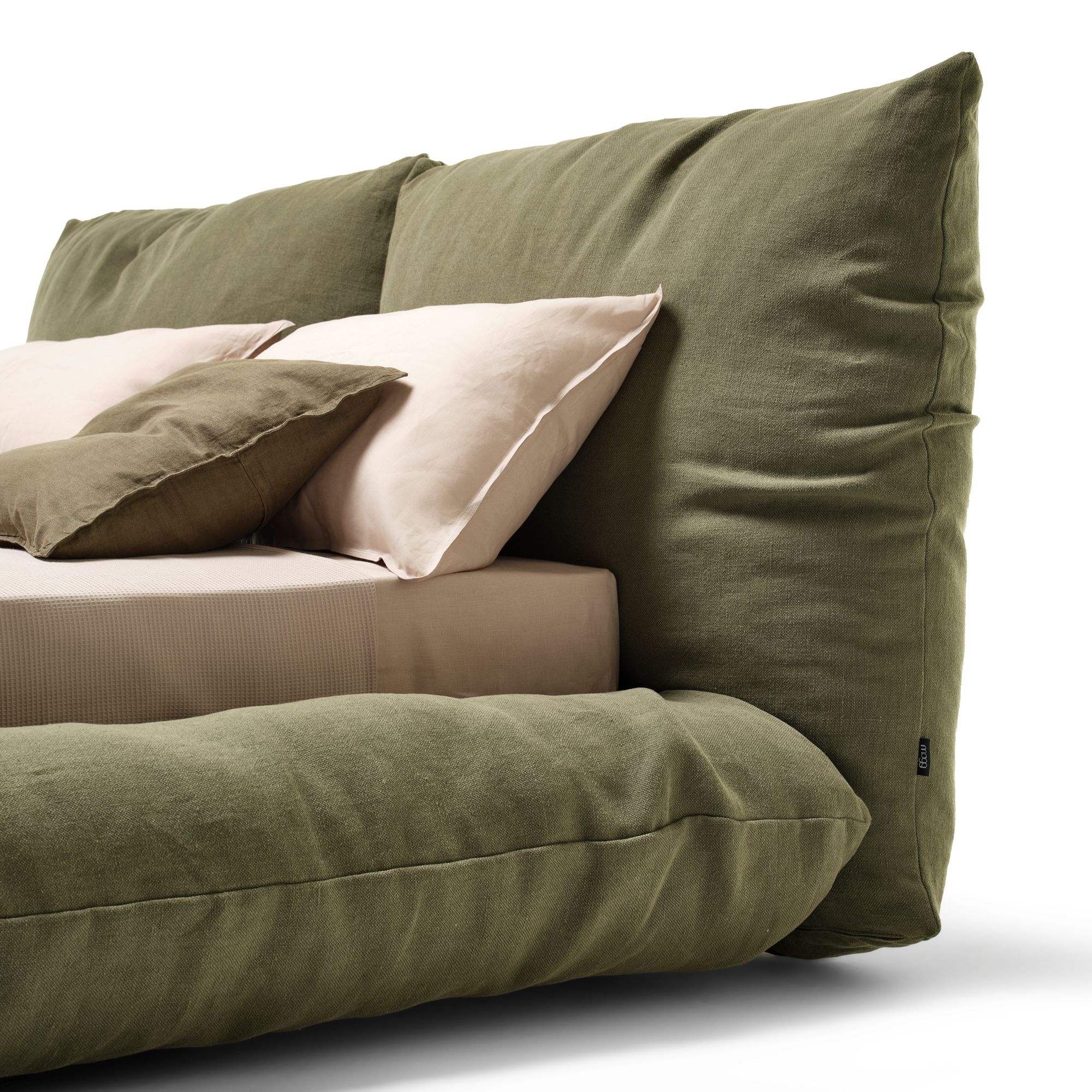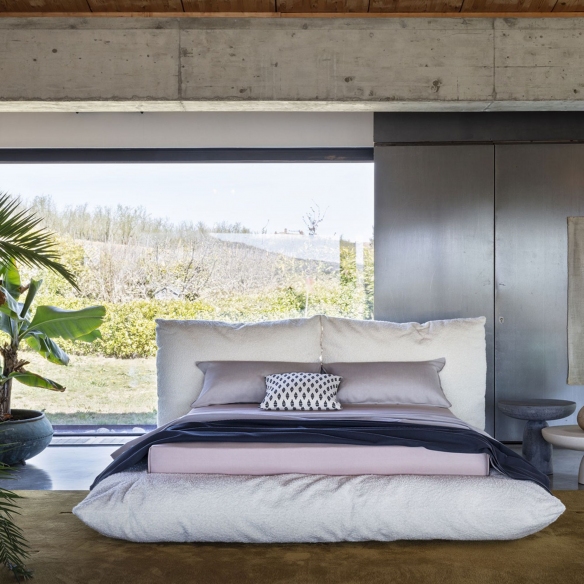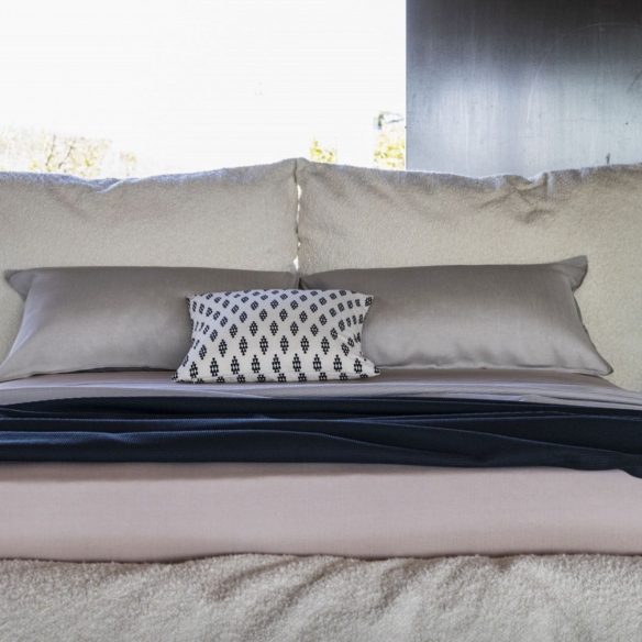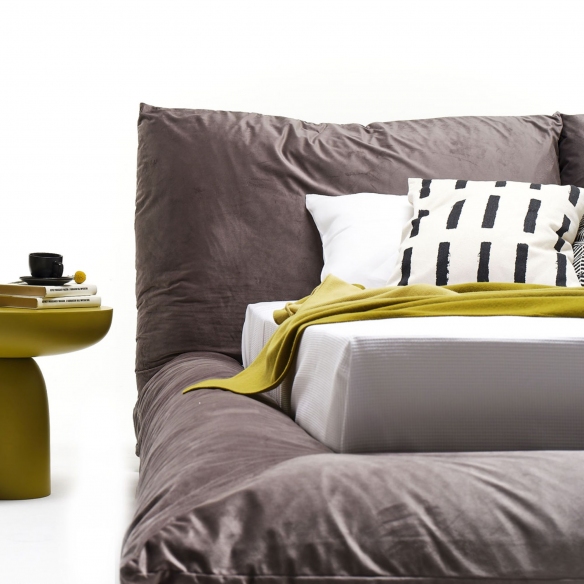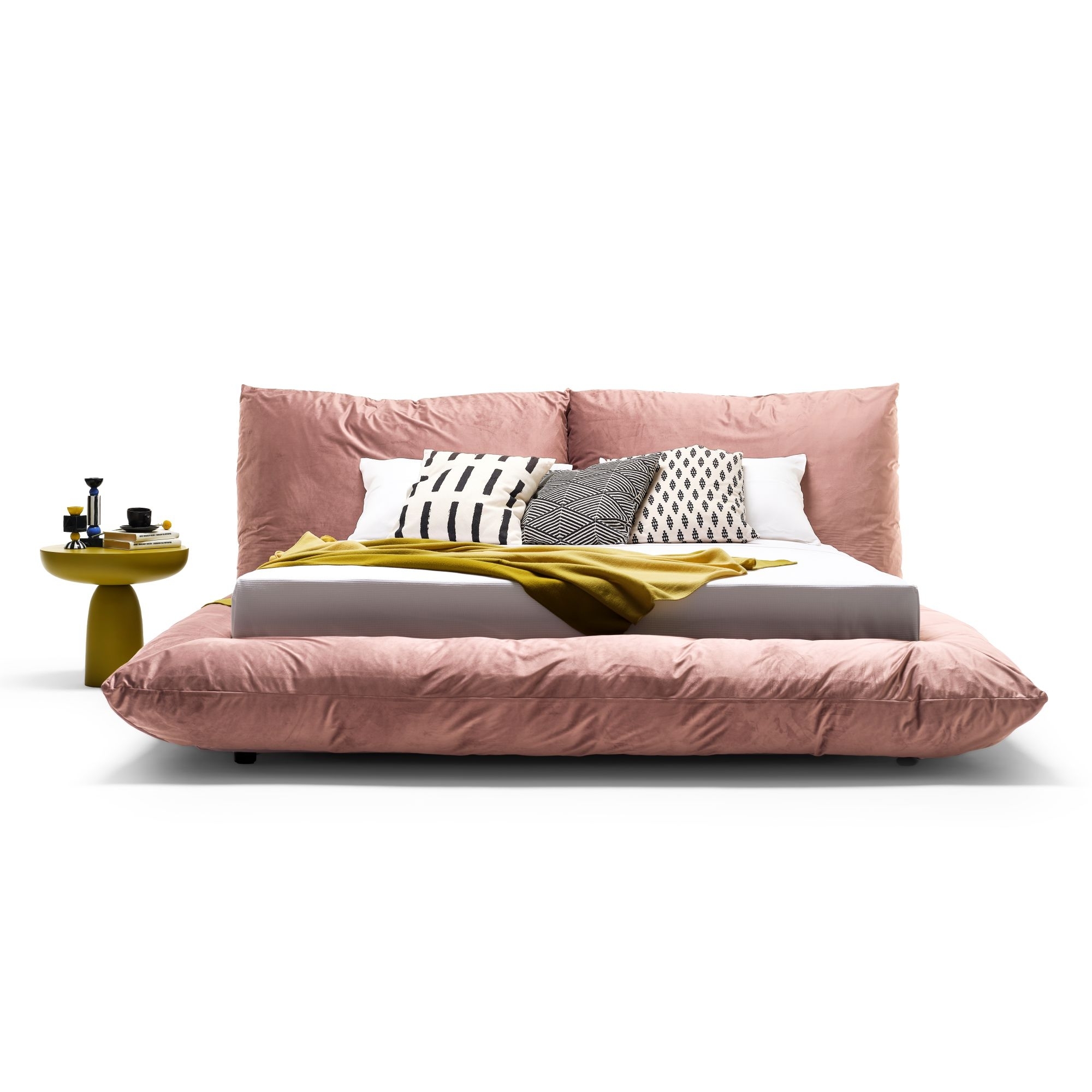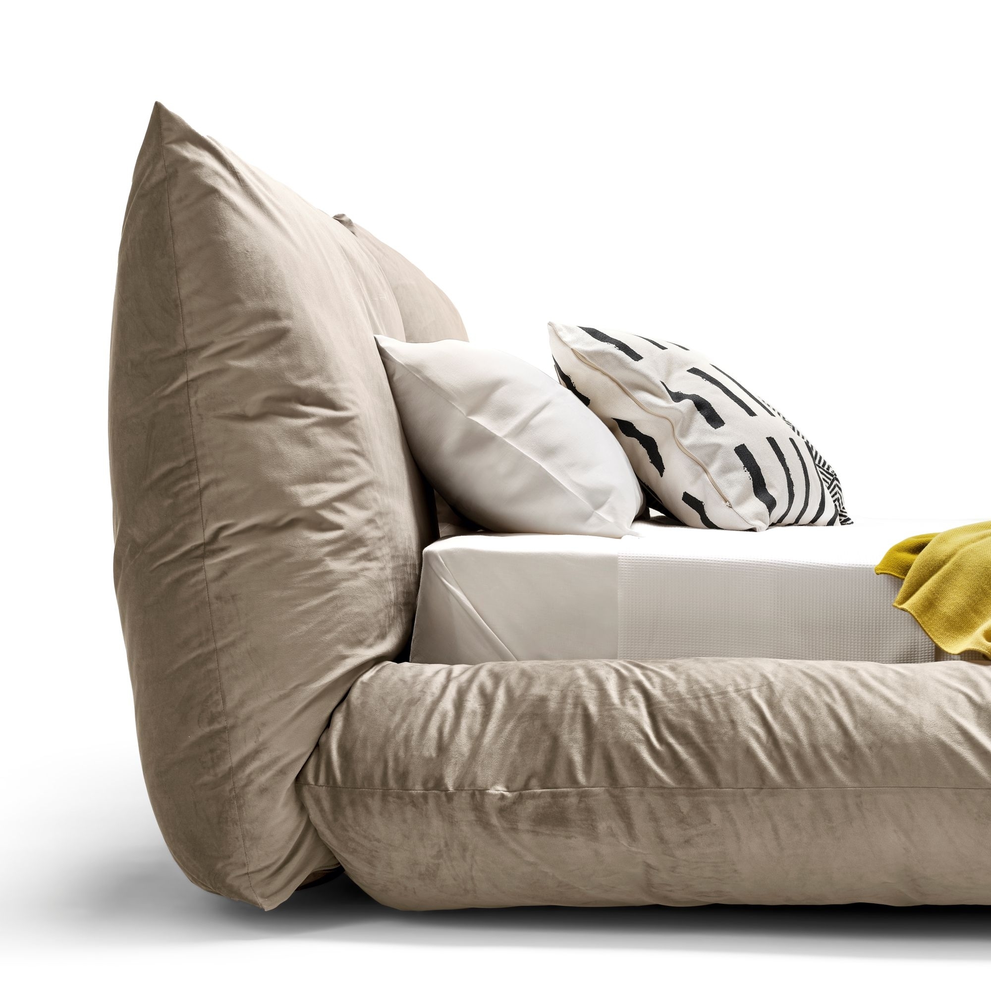 Soft, comfortable and cozy, Alba double bed was designed by the artists of Studio NOVE.3 for Mogg, a double bed featuring superior quality materials and a minimalist design that make it the perfect solution for decorating modern spaces. Brought to its essence, its unique shape, outlined by soft and large cushions, was created to ensure maximum comfort, offering simplicity and modern elegance. Total absence of structural elements, only large pillows to support the bed, making it seem like sleeping on a cloud. You can choose from a wide range of colors and 5 different fabrics: