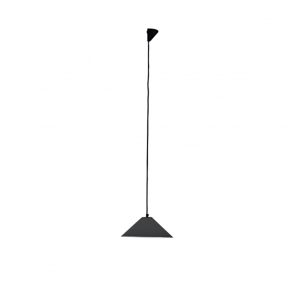 Suspension lamp from Aggregato collection, with rosette in thermoplastic resin and painted metal, 38 cm. Simple in shape but surprisingly versatile, Aggregato is a suspension lamp with direct light emission that features a conical metal grey diffuser. Beautiful in modern open spaces, this lamp offers a unique lighting solution for cozy and welcoming lounge areas that need that extra touch of light. (E27 bulb connection - 77W). Designed by Enzo Mari for Artemide.