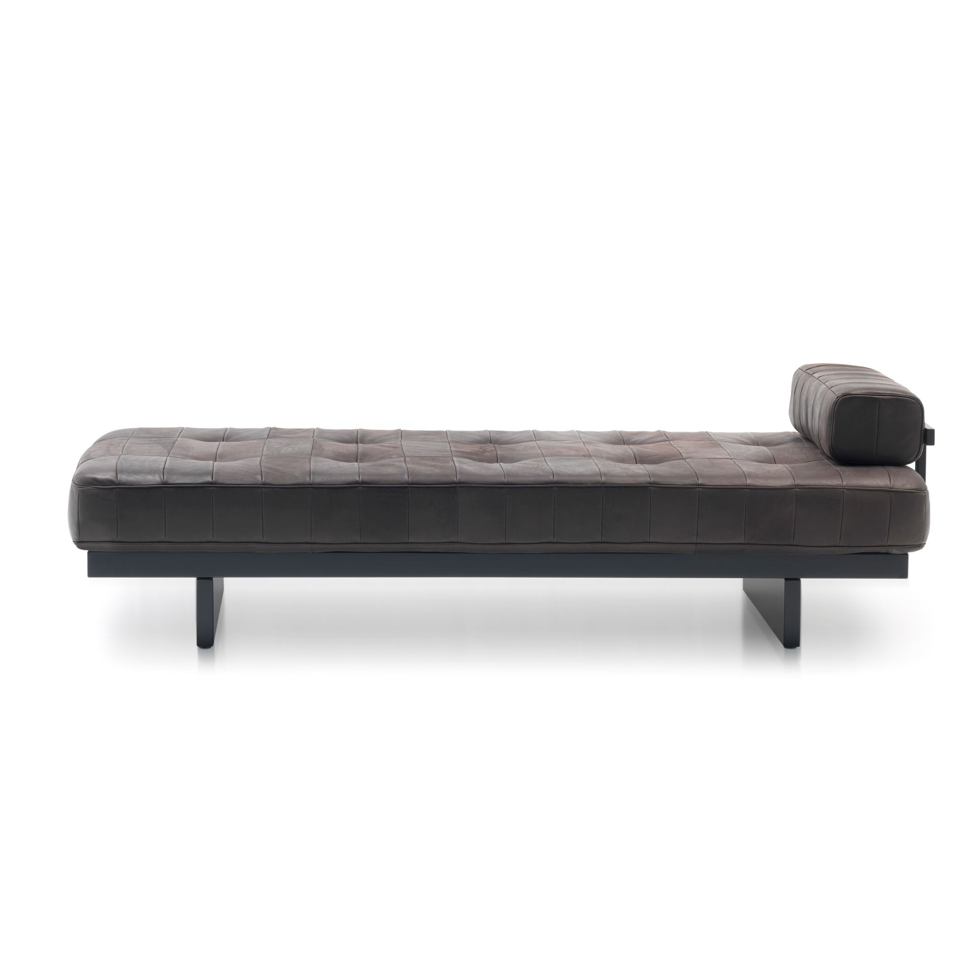 DS-80/91 reclining daybed with SEDEX leather upholstery and matt black silk lacquered solid wood frame, 202x90 cm. Linear and visually flowing, this daybed is a classic and elegant choice for modern settings. It has a comfortable back and a large seat, whose peculiarity lies in its fine leather, skilfully crafted to recall quilted fabrics. You can choose from a wide selection of leathers and colors. Designed and manufactured by de Sede.