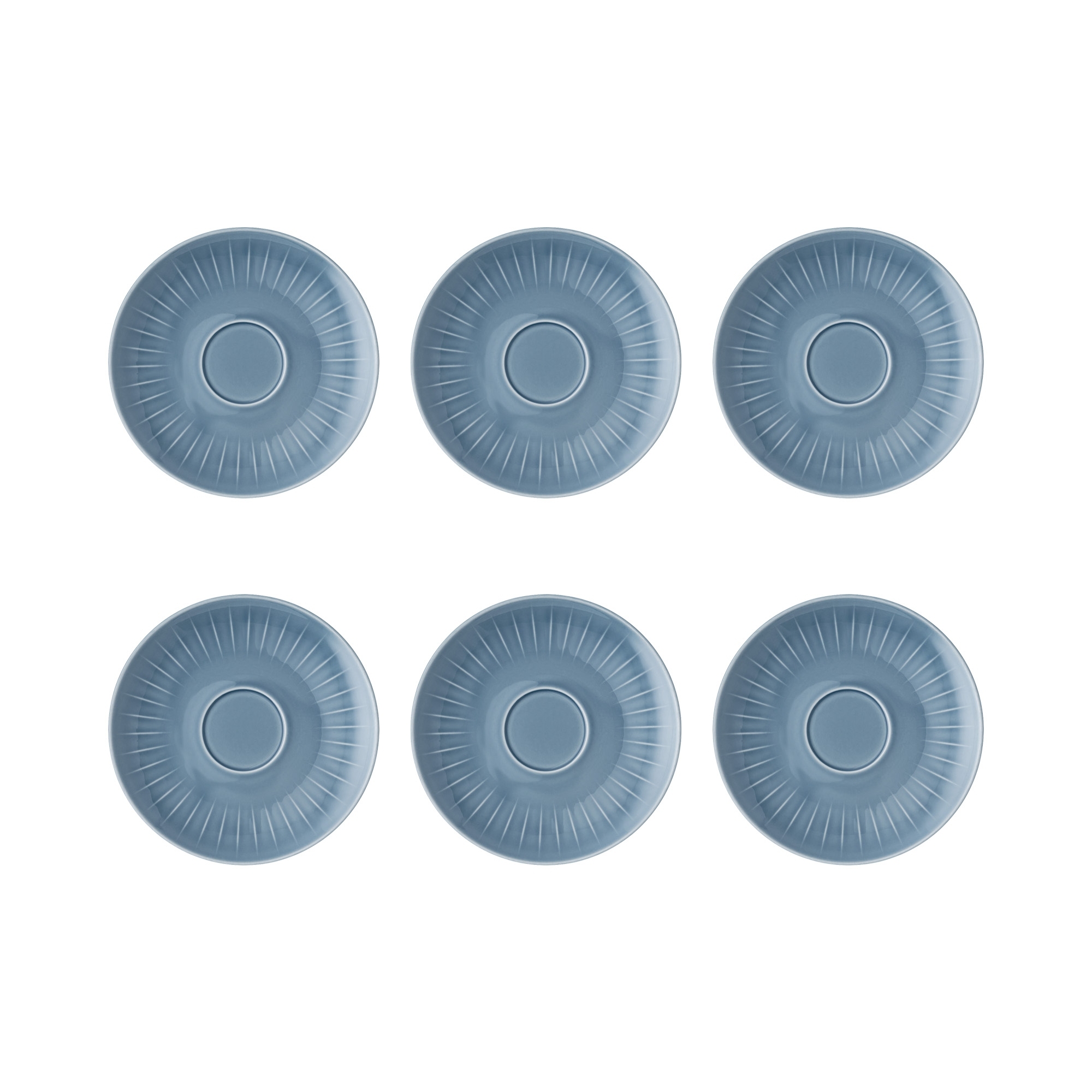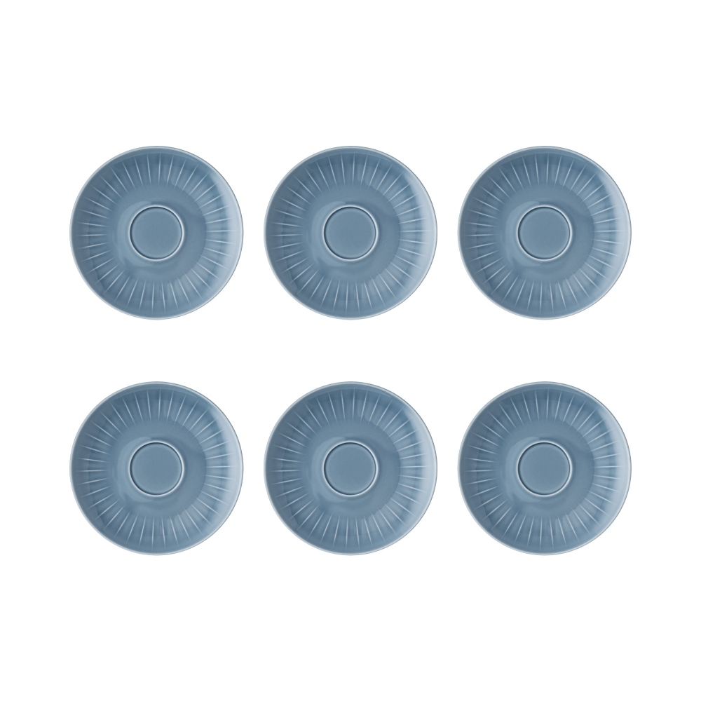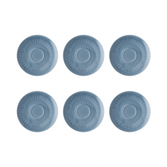 6 Combi cup saucers (17 cm diameter) made of decorated porcelain. Available in 4 elegant colors, the Combi cup saucers immediately elevate the experience of your daily coffee or tea. Designed to be the perfect complement to the Combi cup, these saucers come in pastel colors, which exude calmness and sophistication. The unique detail of hand-painted chestnut stripes enhances each sip of your favorite hot beverage. Expand your Combi collection with these porcelain saucers, crafted for those who do not compromise on quality and style in home design. Made by Rosenthal.
