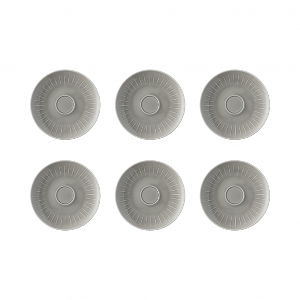 6 porcelain espresso cup saucers from Joyn line, 16 cm. Available in Mint Green, Grey, Denim Blue and White, the saucers feature fine detailing on a quality porcelain background. Gorgeous when paired with espresso cups from the same collection, these saucers keep surfaces clean so you can make coffee break even more pleasurable. Designed and manufactured by Rosenthal.