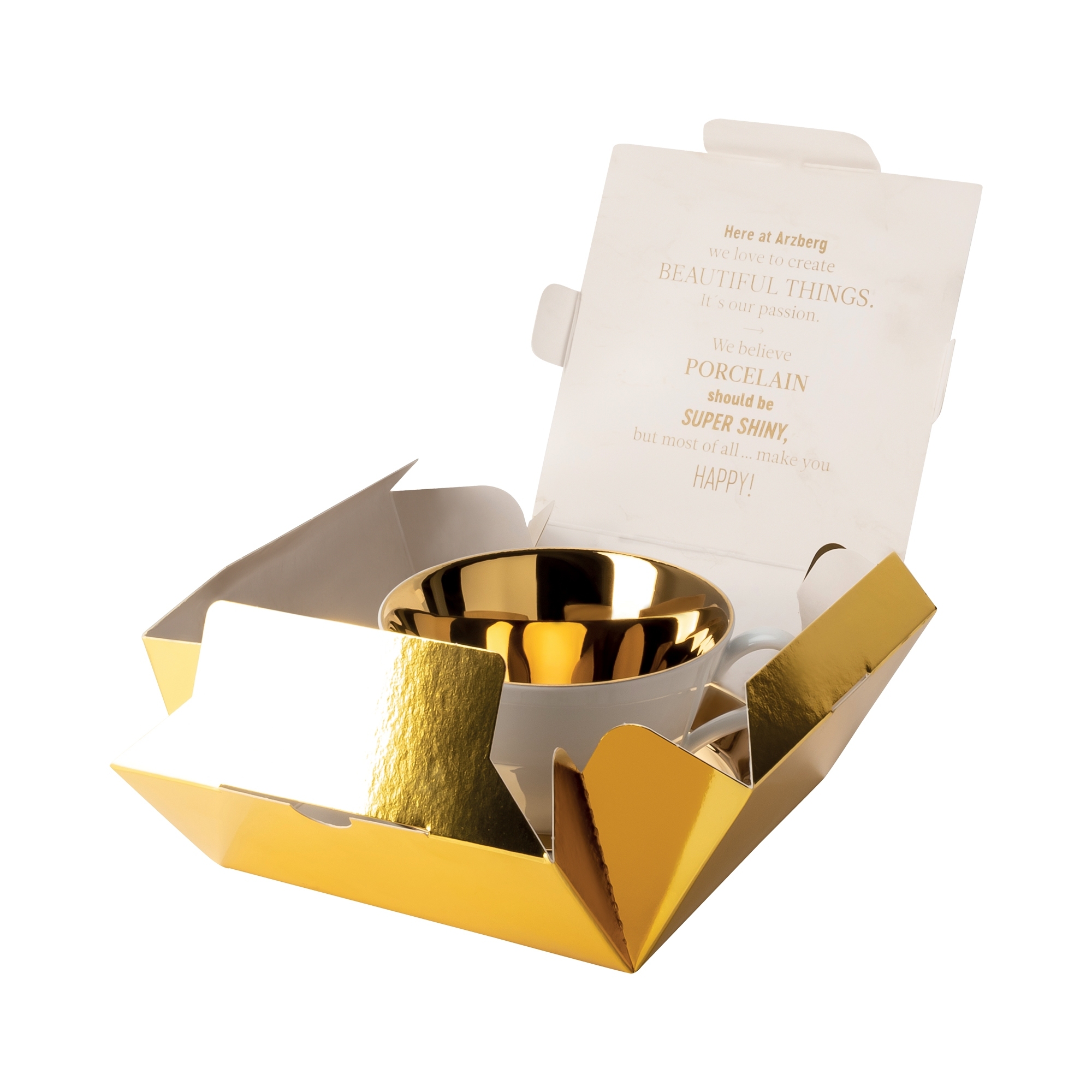Porcelain cafà© au lait cup including saucer, from Tric line, 35 cl. Available in Sunshine and Moonlight, this cup is ideal for delighting your guests with a good coffee or cappuccino. White porcelain is stunning along with gold or platinum details, which give it an outstanding beauty. Perfect on a modern and elegant table, the cup is also easy to clean and a great gift idea! Made by Rosenthal.