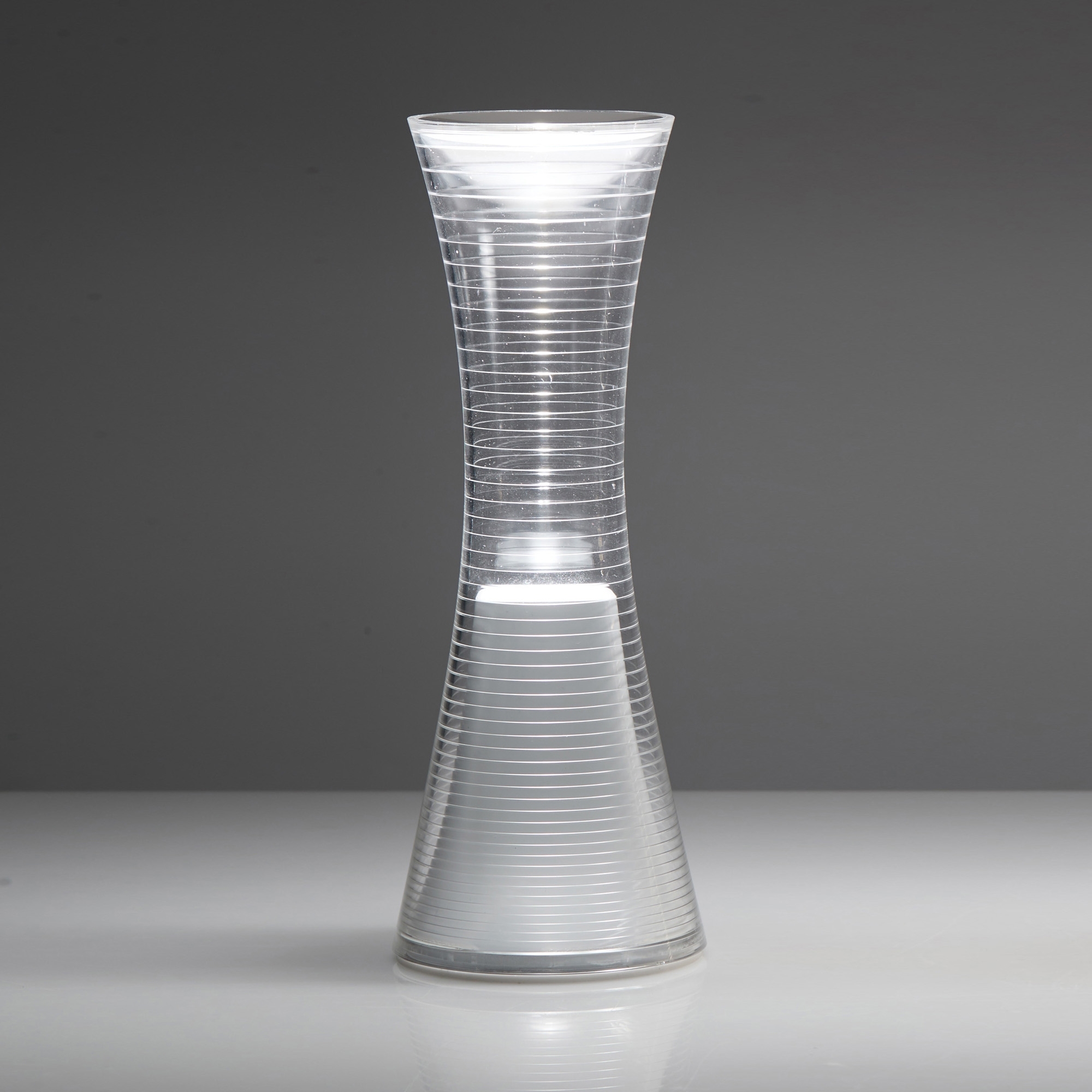 Come together aluminum and methacrylate table lamp. Available in white, copper and aluminium, Come together is a Li-Po battery rechargeable lamp that ensures up to 16 hours of autonomy. It comes with a USB-C recharge and offers three different light performances. Light source: LED 1x3.6W - 2700K - 360lm - CRI: 80 - efficiency 82%. Designed by Carlotta Bevilacqua for Artemide.