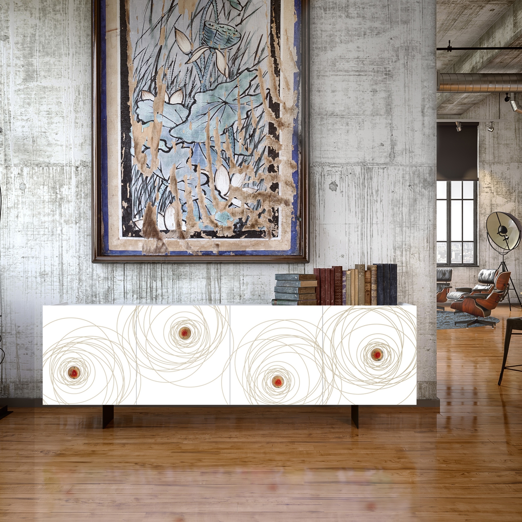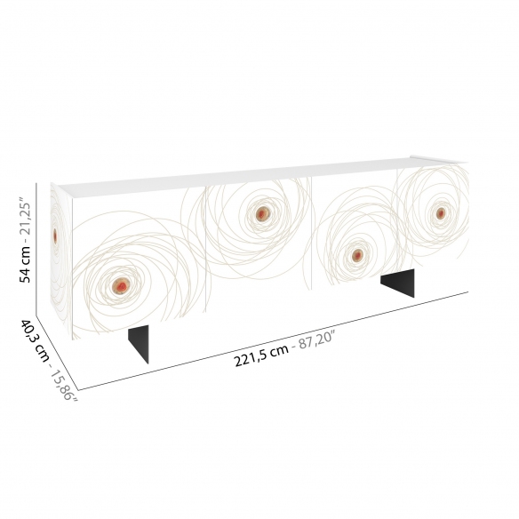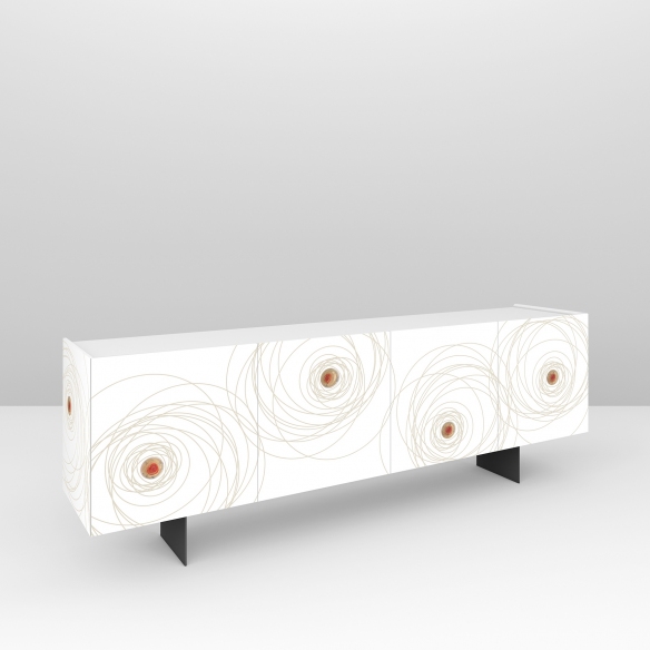 If you are looking for a new and fresh way to furnish your living room, now you can with the G-Round 4-door sideboard! From an idea by the Venetian artist Massimo Ballardin for Pictoom, the sideboard has a modern design and significant dimensions with practical shelves for storing all those objects that would otherwise remain around the house. What else, thanks to digital printing technology the full and bright colors are emphasized that draw a series of circular scribbles characterized by a single central orange detail. And you? What are you waiting for? Order your sideboard straight away here, on Newpop.it!