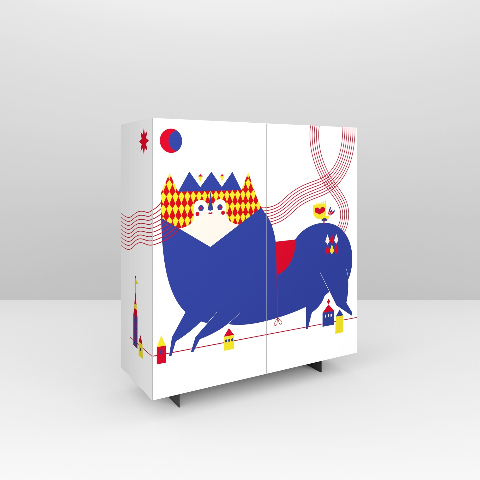 If you are looking for a new and fresh way to furnish your living room, with the Blue Lion 2-door sideboard you can now! From an idea of the painter and illustrator Camilla Falsini for Pictoom, the sideboard has a modern design and important dimensions with many comfortable shelves for storing all those objects that would otherwise remain around the house. What else, thanks to digital printing technology the full and brilliant colors of the design dedicated to a giant blue lion strolling among colored houses are highlighted. And you? What are you waiting for? Order your sideboard here, on Newpop.it!