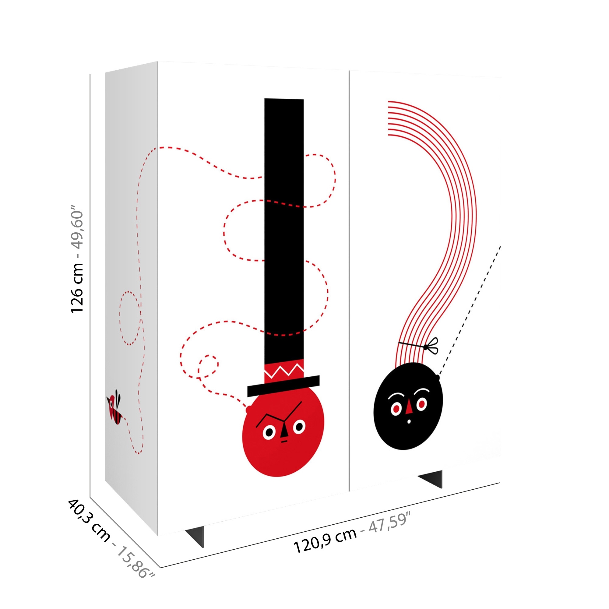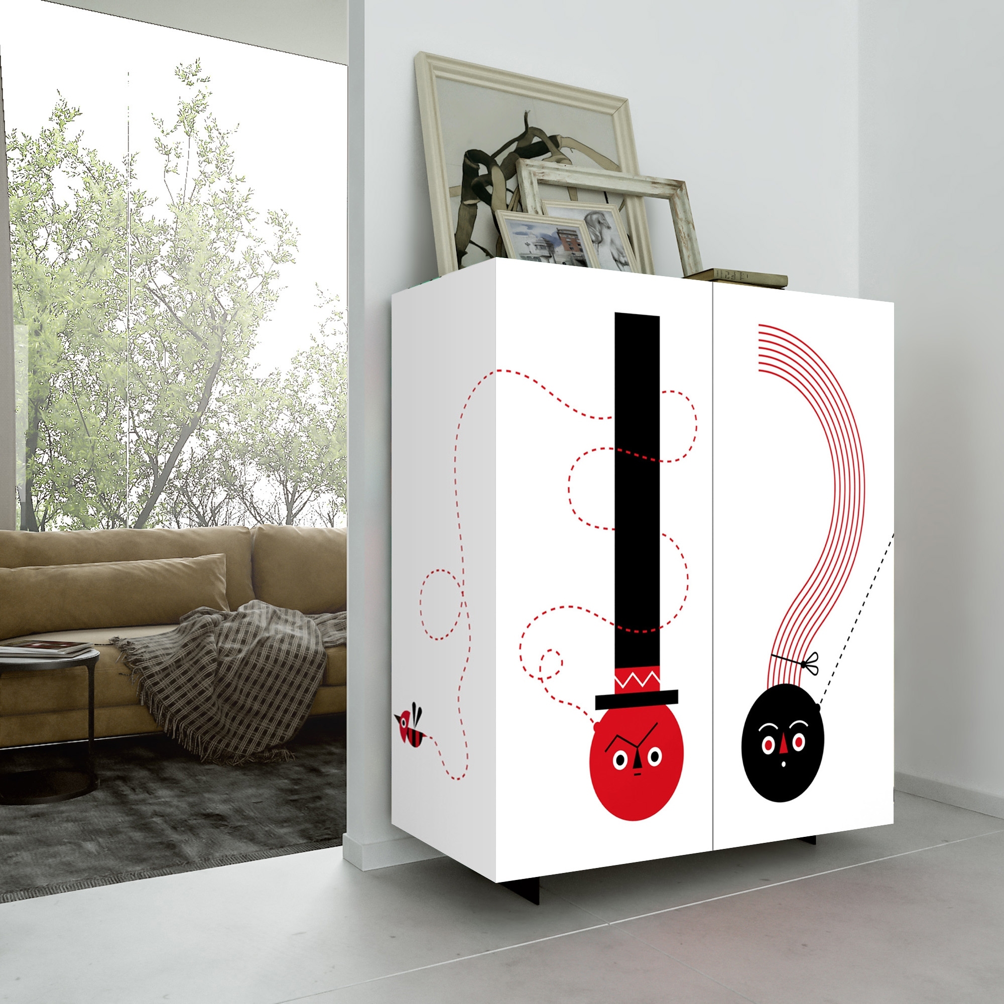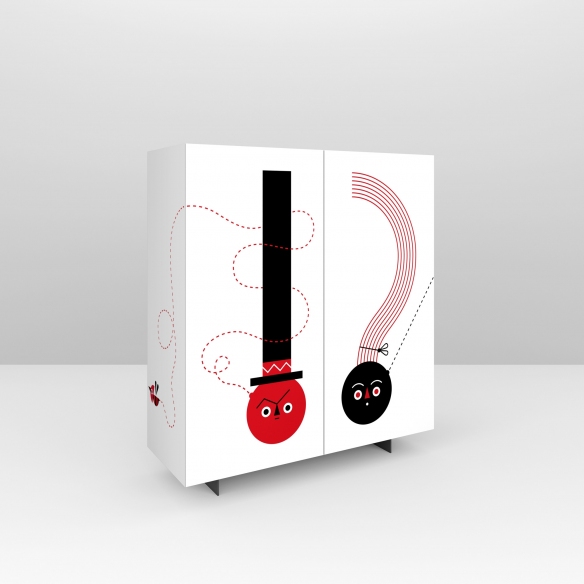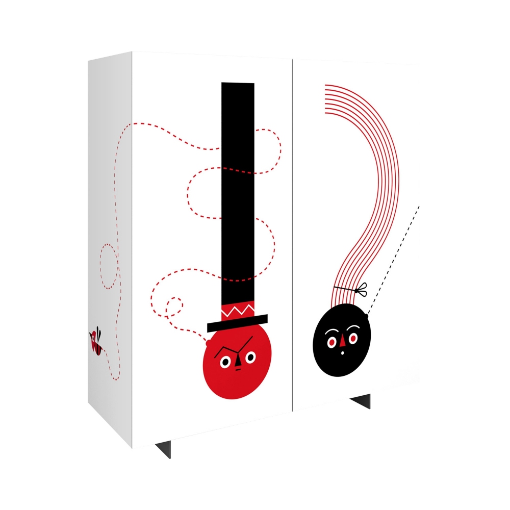 If you are looking for a new and fresh way to furnish your living room, with the What now 2-door sideboard you can! From an idea of the painter and illustrator Camilla Falsini for Pictoom, the sideboard has a modern design and important dimensions with many comfortable shelves for storing all those objects that would otherwise remain around the house. What else, thanks to digital printing technology, the full and bright colors of the design in an abstract style and with a decidedly pop taste are highlighted, characterized by an exclamation point and a question mark in a lively combination of red and black. And you? What are you waiting for? Order your sideboard here, on Newpop.it!