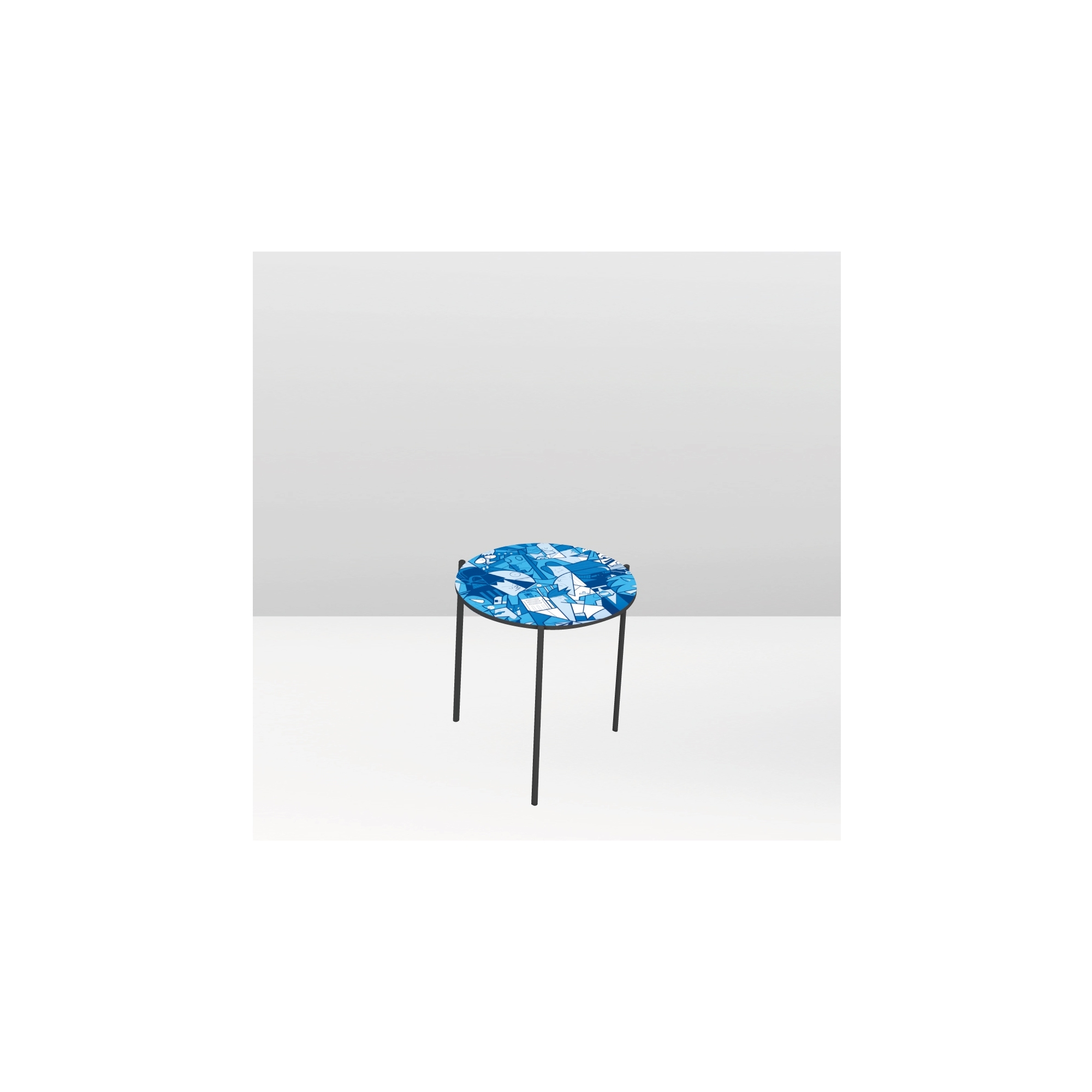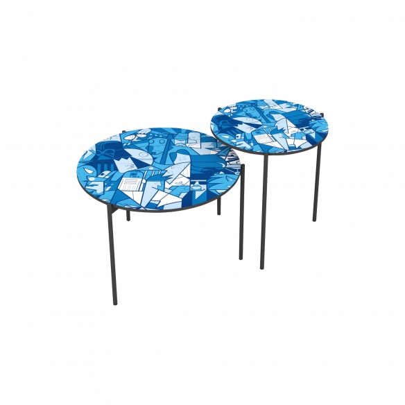 Coffee table with a diameter of 45 cm from the Melting Pop line with graphite gray painted metal structure, MDF top and digitally printed graphics with protective water-based paint. Perfect for redesigning your living room, the coffee table matches flawlessly with the sideboard of the same line for a fresh and playful decor. Designed by Ale Giorgini for Pictoom.