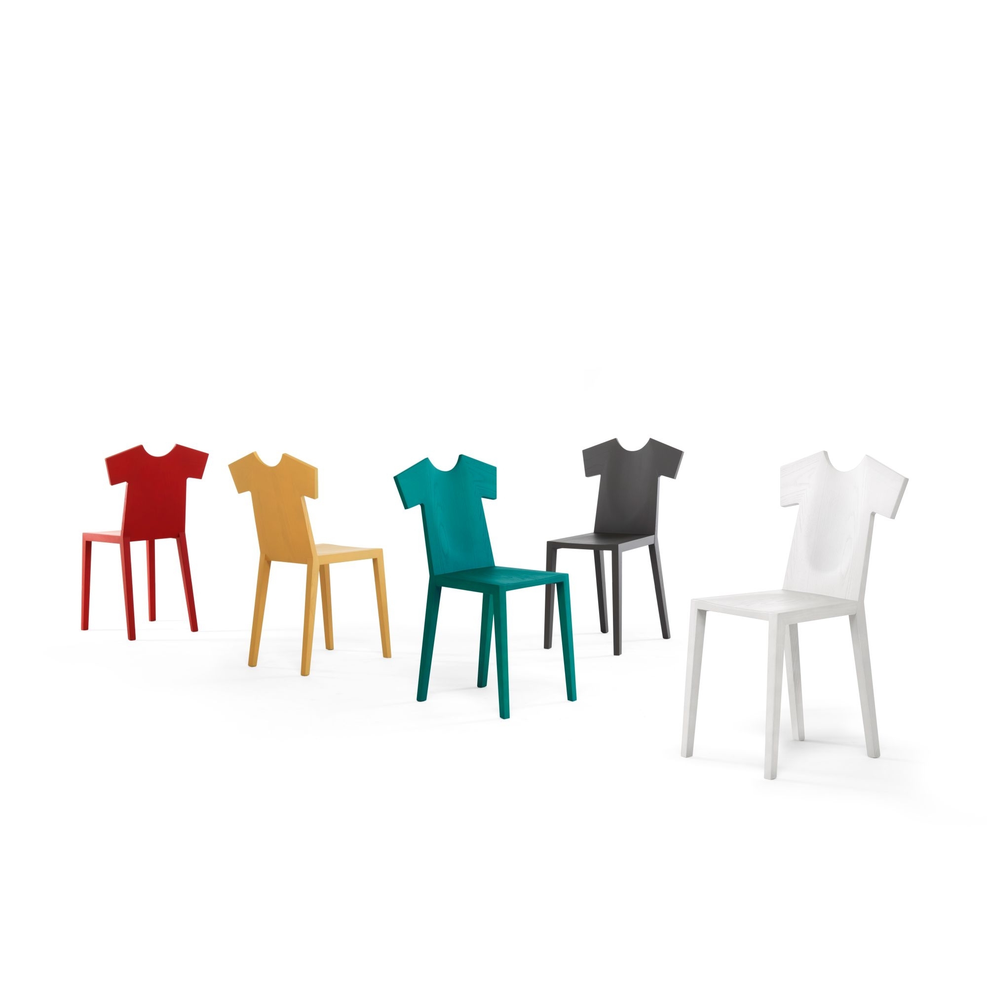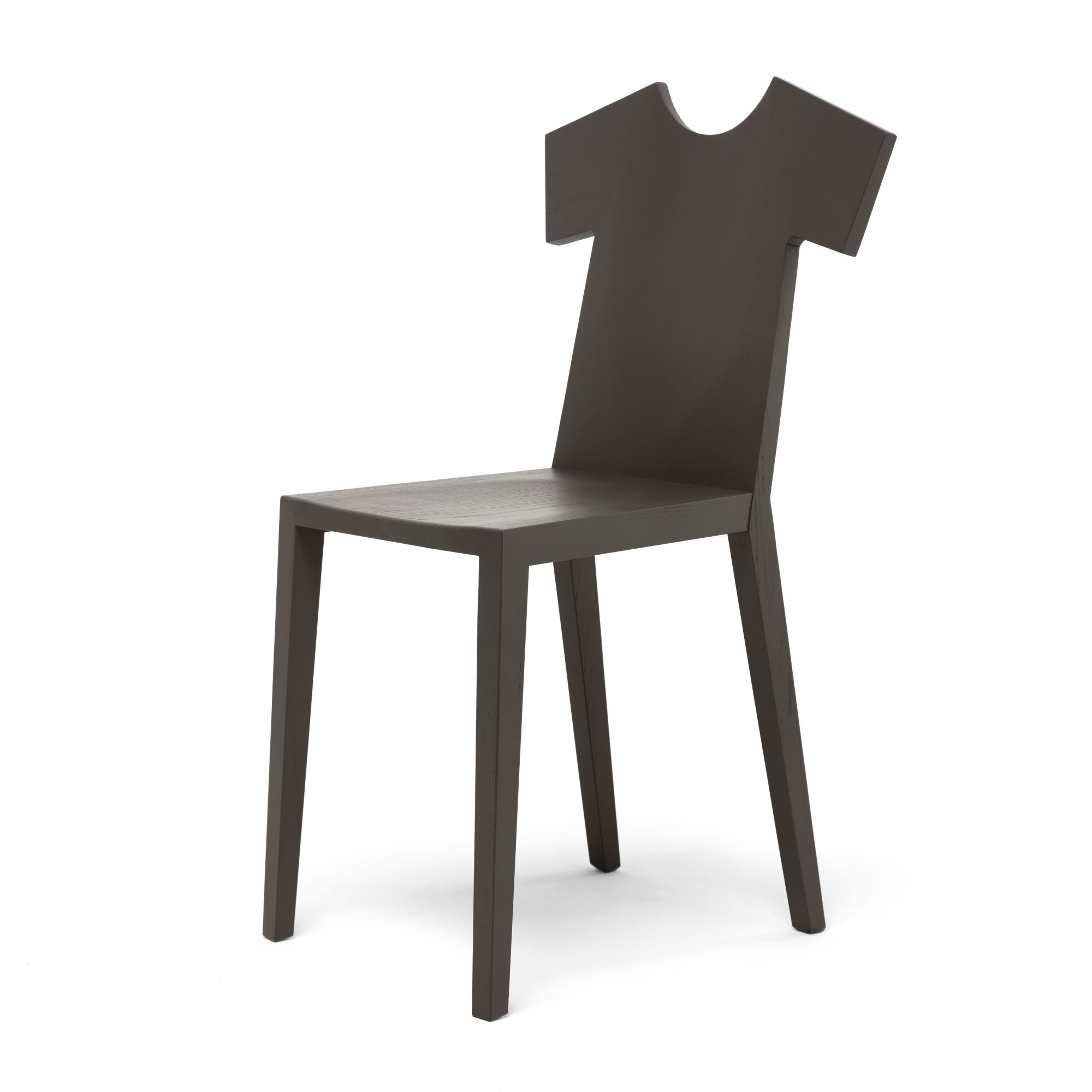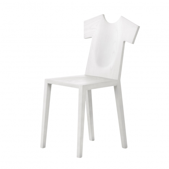 T-Chair made of solid ash wood and open pore lacquer. Available in different versions, the T-Chair is a comfortable and almost sculptural chair with an eye-catching effect, which draws inspiration from a T-Shirt and perfect for furnishing your spaces with a light-heartedness twist. Designed by Annabet Philps for Mogg.