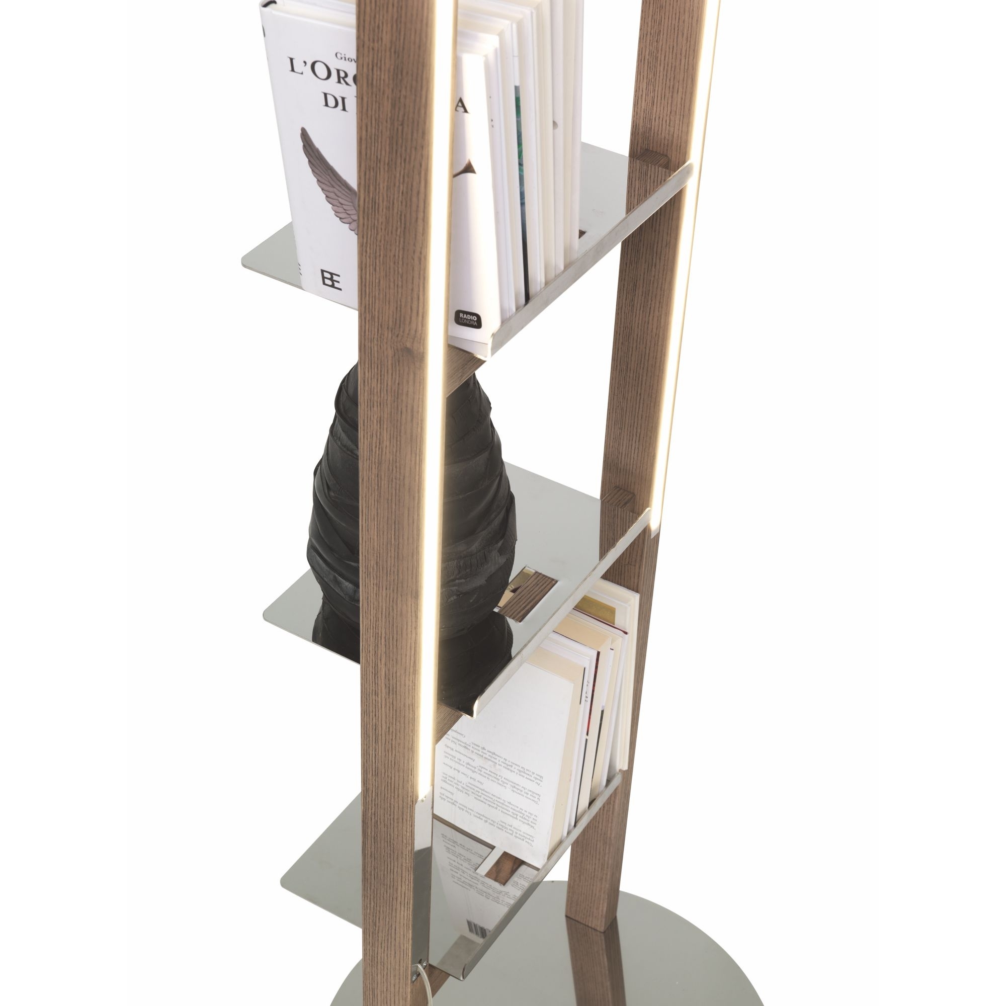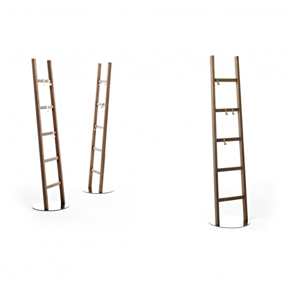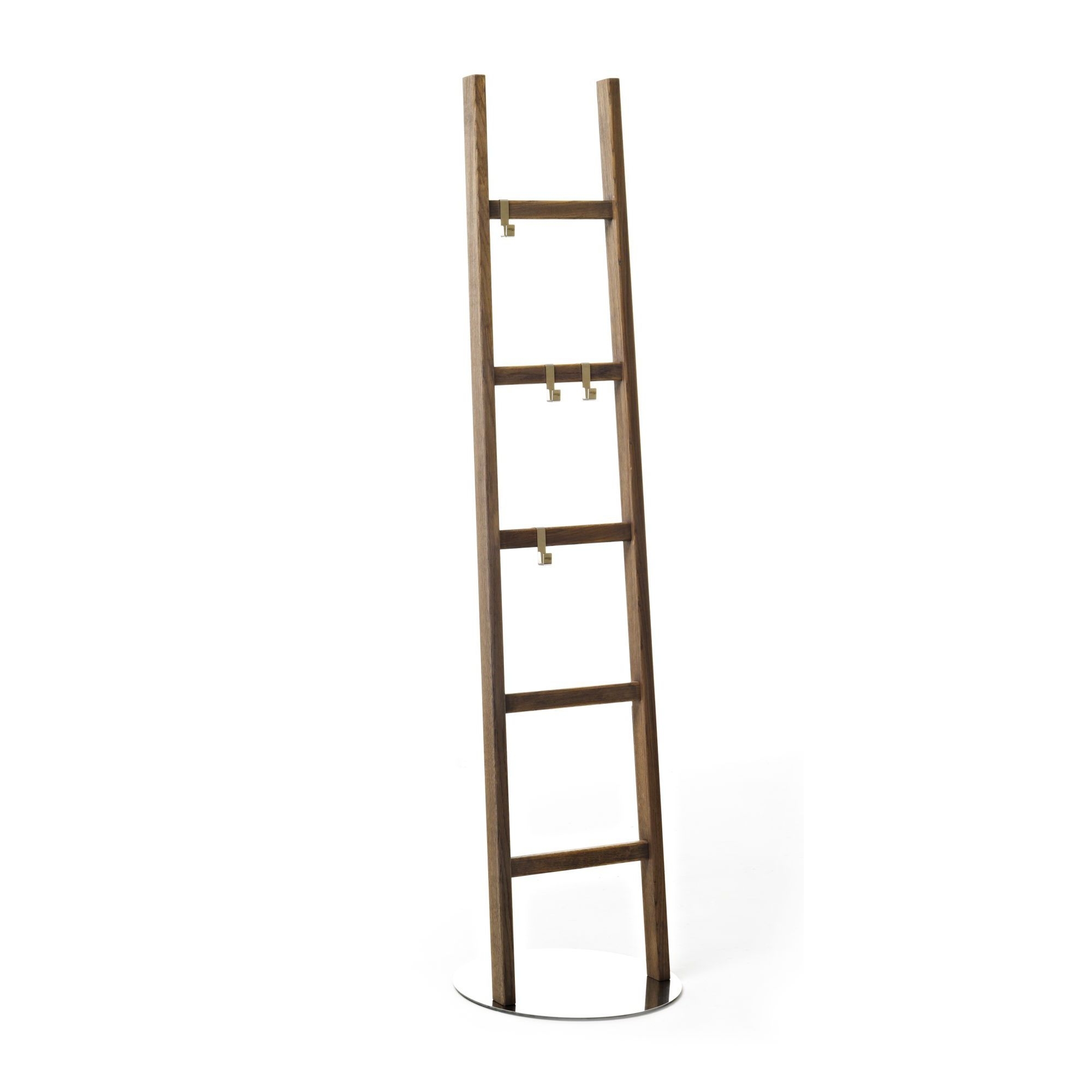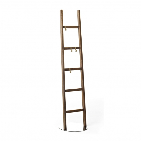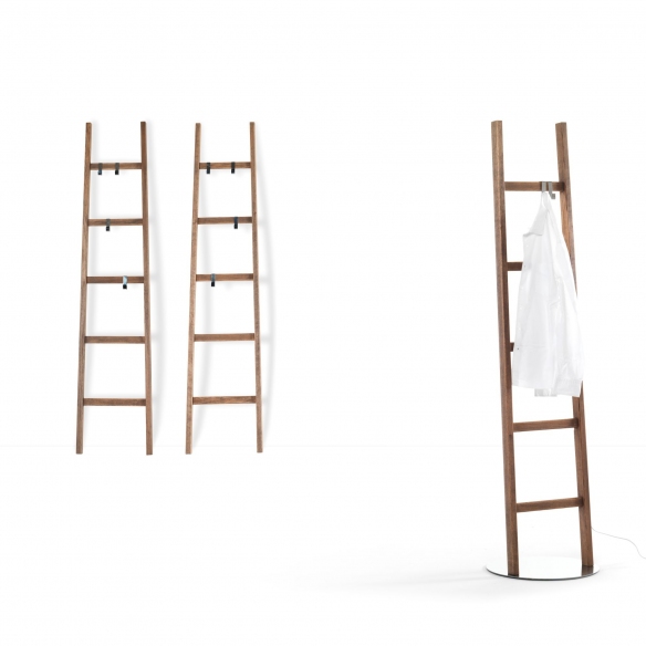 Alla Scala coat hanger lamp made of solid ash wood, LED light and 4 coat hooks. You can choose between self-supporting thanks to the weighted metal plate or wall-mounted. A functional object with a simple design that adapts to any type of environment. Some accessories are available such as coat hooks, shelves and a mirror. Designed by Claudio Bitetti for Mogg.