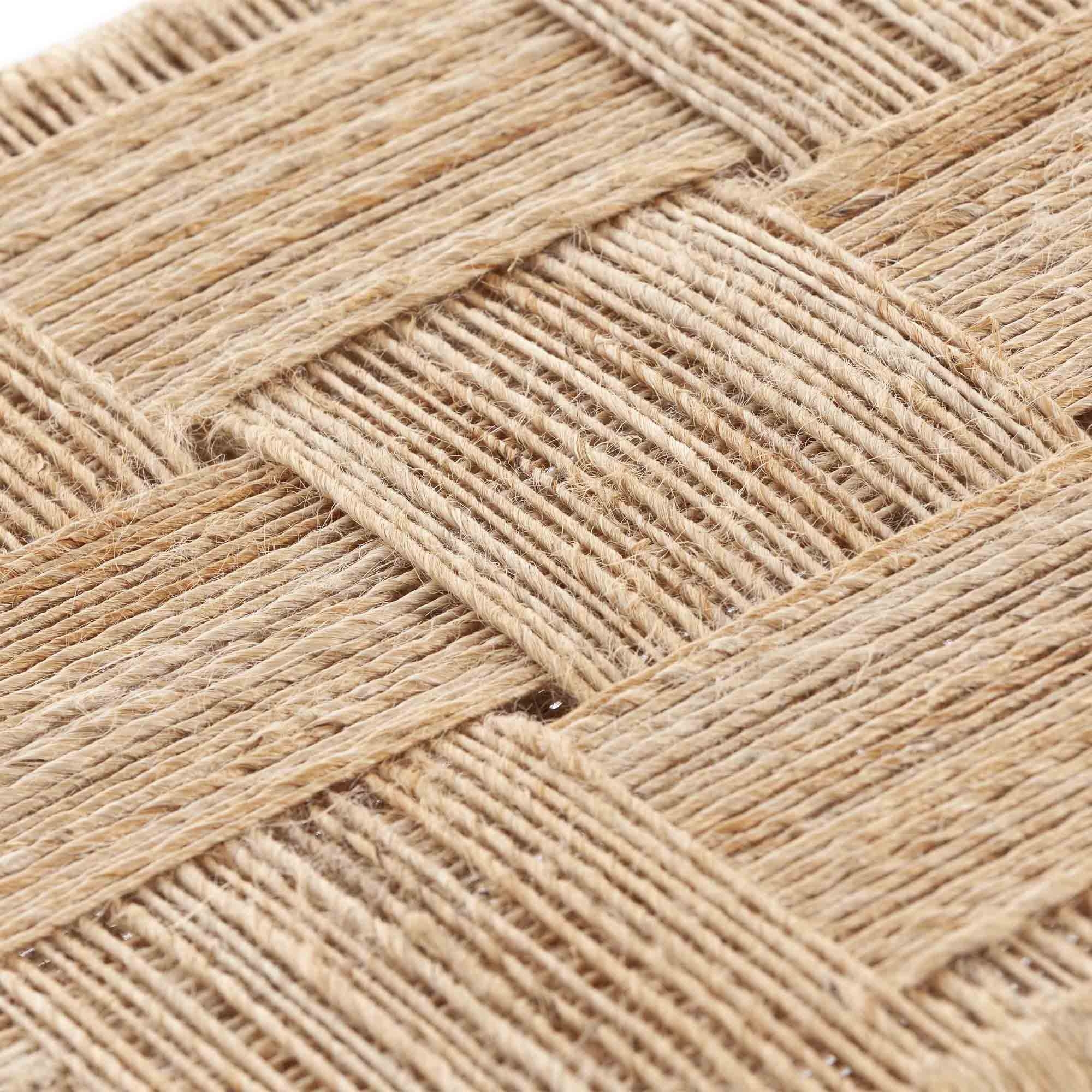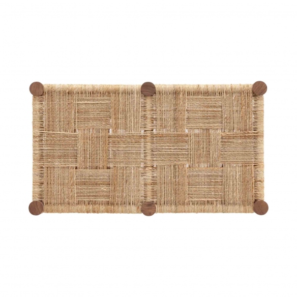 Double stool from the Roots line with base in acacia wood and seat in natural jute and cotton blend woven and worked in detachments to ensure its stability, resistance and versatility and to create a flat and hairless surface layer. The stool is the right accessory to add comfort and make large living or relaxation spaces warm and welcoming, furnishing them with a high quality product that is easy to combine with any style or furnishing scheme. Designed by Inma Bermúdez for Gan.