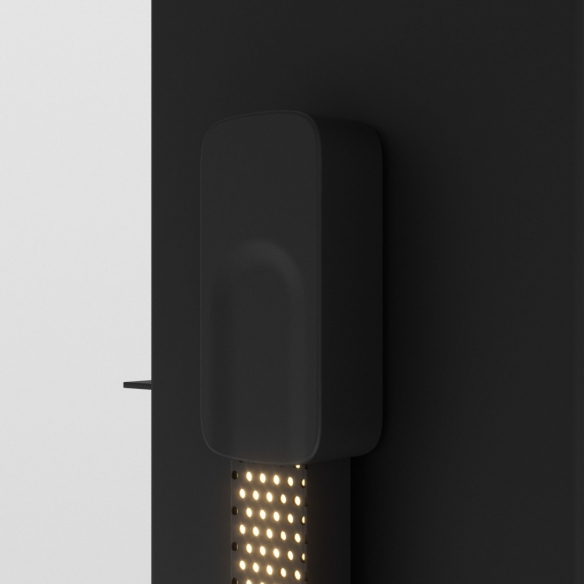Dimmable LED lamp with body made of cold-profiled, micro-perforated aluminum painted in matt white or black. Fixing by magnets. Standard 5V and 2A power supply for Smartphones and USB-C cable (not included). Designed by Edoardo Radice for BBB Italia.