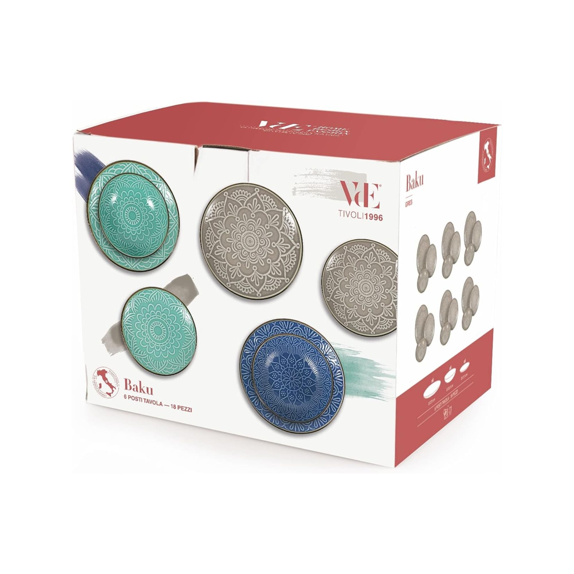 Service of 18 plates from the Baku Gray line made of ceramic and perfect for everyday use. The service includes: