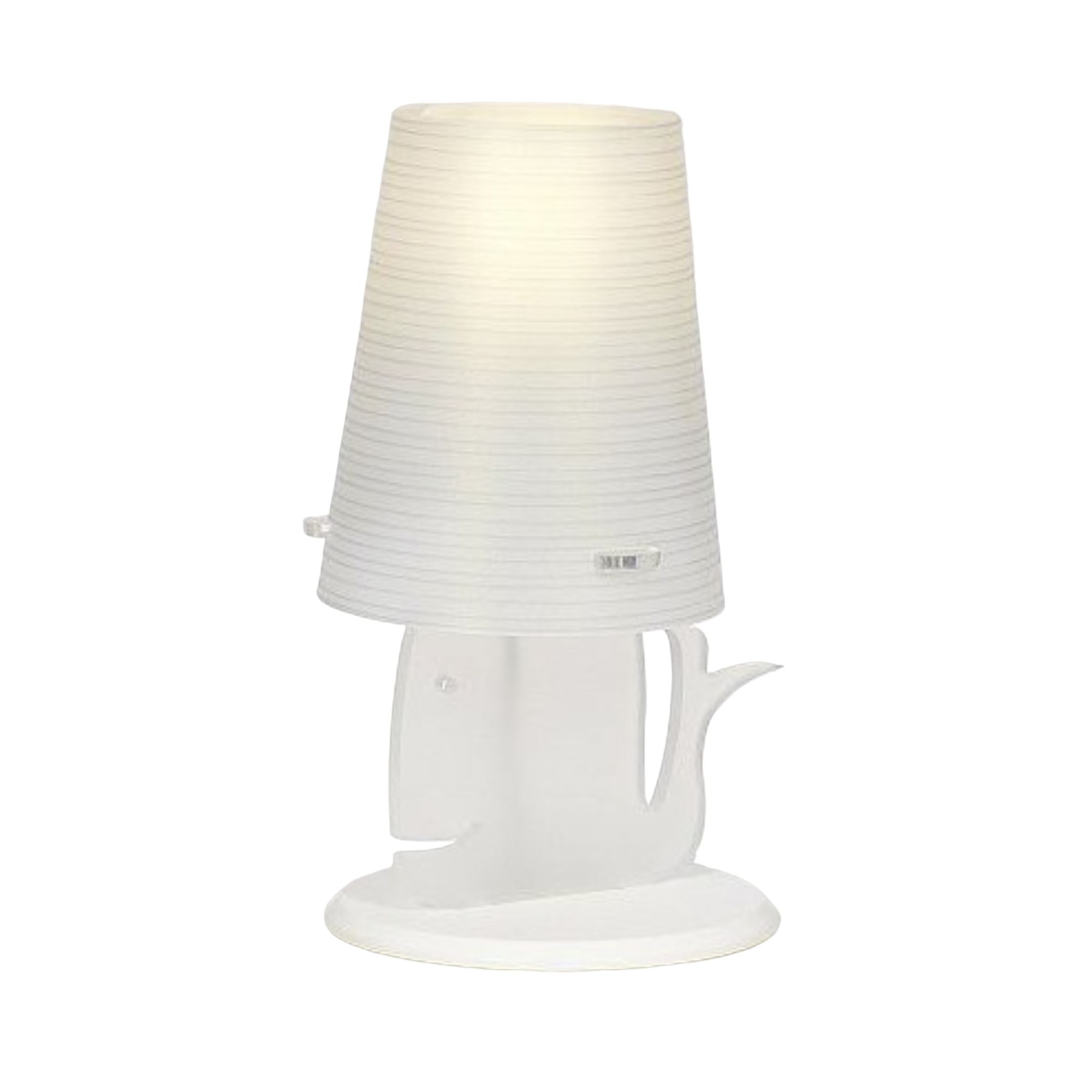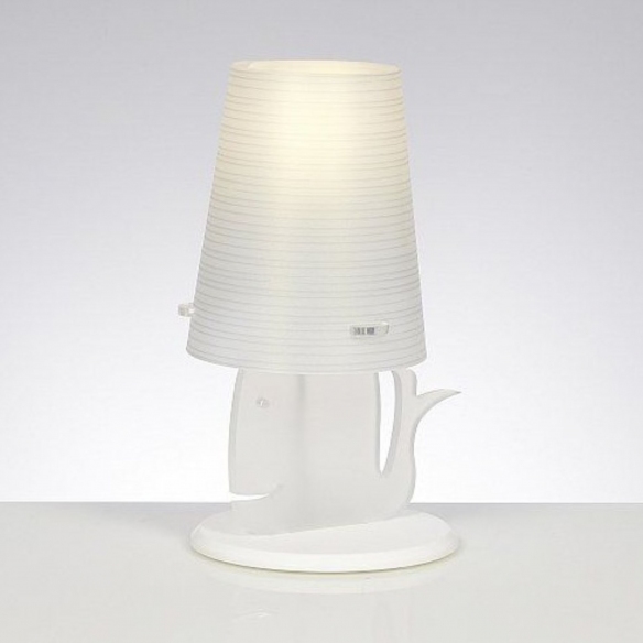 Whale table lamp with base made of neutral white methacrylate and conical diffuser in pearl white polypropylene with decoration. The lamp is the perfect solution for furnishing a cheerful and carefree sleeping area. Light source 1x30W E27 (not supplied). Made by Emporium.