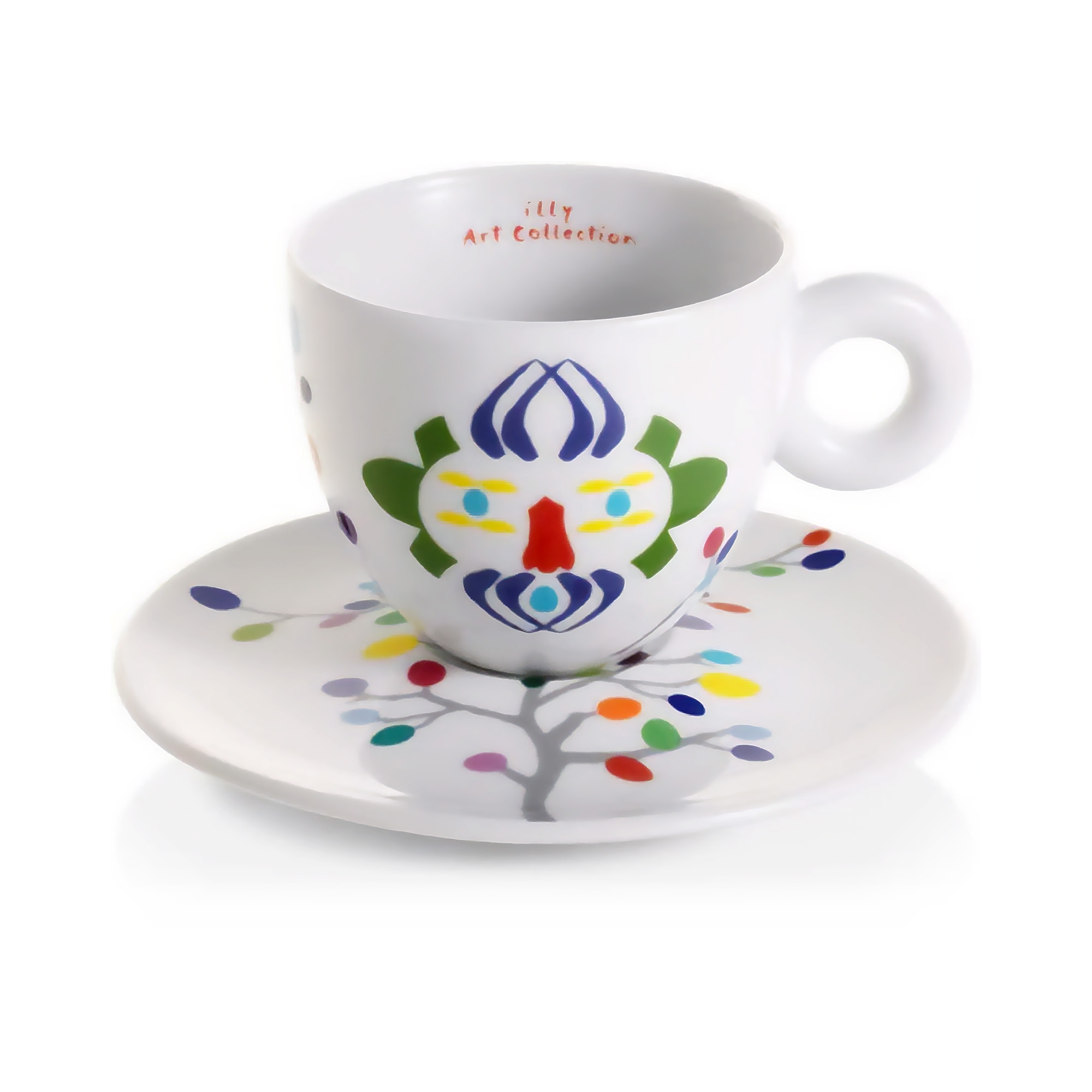 6 cappuccino cups from Illy Art Collection Pascale Marthine Tayou made in decorated porcelain, numbered and signed by the artist. The cups come complete with their original box, making them perfect as a gift! Made by Illy.