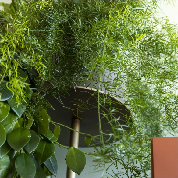 Ikebana cupboard made with MDF structure and metal frame, 3 internal glass shelves. Available in 2 finishes as regards the frame and in 25 finishes as regards the container, the Ikebana cupboard is proposed as an elegant and contemporary piece of furniture, proposing a new way of displaying objects, vases and sculptures. Thanks to the structure with metal supports, you can create a real home garden, placing the plants and creating fantastic compositions. The frame includes 3 shelves with a diameter of 32, 25 and 28 cm. Designed by Uto Balmoral for Mogg.