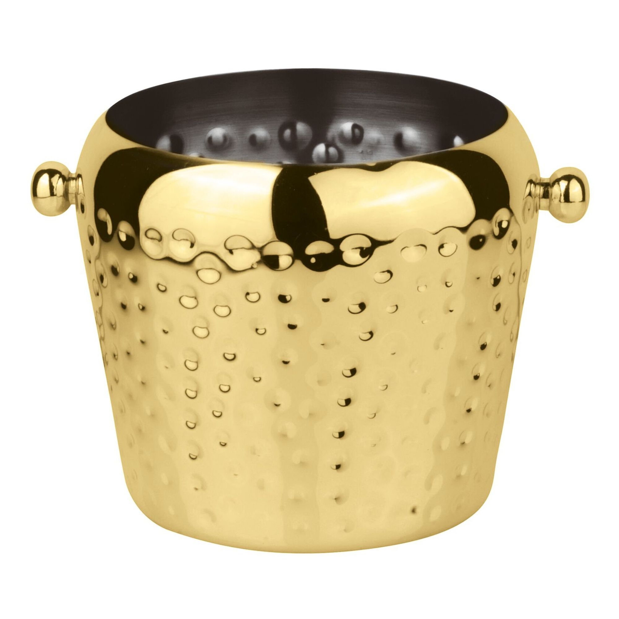 Ice bucket with a diameter of 15 cm made of stainless steel with a hammered finish and available in three different colors. The bucket is perfect for always having fresh and sparkling drinks to enjoy in company. Signed Paderno.