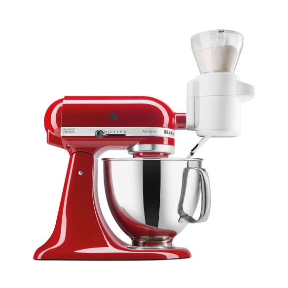 The sifter and scale for stand mixers is a wonderful and innovative accessory, perfect for cooking enthusiasts who wish to combine convenience and precision; compatible with all KitchenAid stand mixers, this sifter and scale allows for the easy addition of weighed and sifted ingredients directly into the bowl. However, sifting dry ingredients such as flour, baking soda, or yeast can lead to a more accurate mix and fluffier results. Furthermore, the digital scale weighs ingredients with unparalleled precision, ensuring unique outcomes, from soft desserts to delicious homemade crispy bread. It mounts easily onto the KitchenAid stand mixer with a secure and stable attachment, turning ingredient preparation into a fast, clean, and precise process. This accessory is easy to clean and maintain: all its components can be washed in the dishwasher, except for the sifter and scale housing which can be wiped with a damp cloth. Cooking has never been so simple and fun; choose the KitchenAid sifter and scale for yourself.