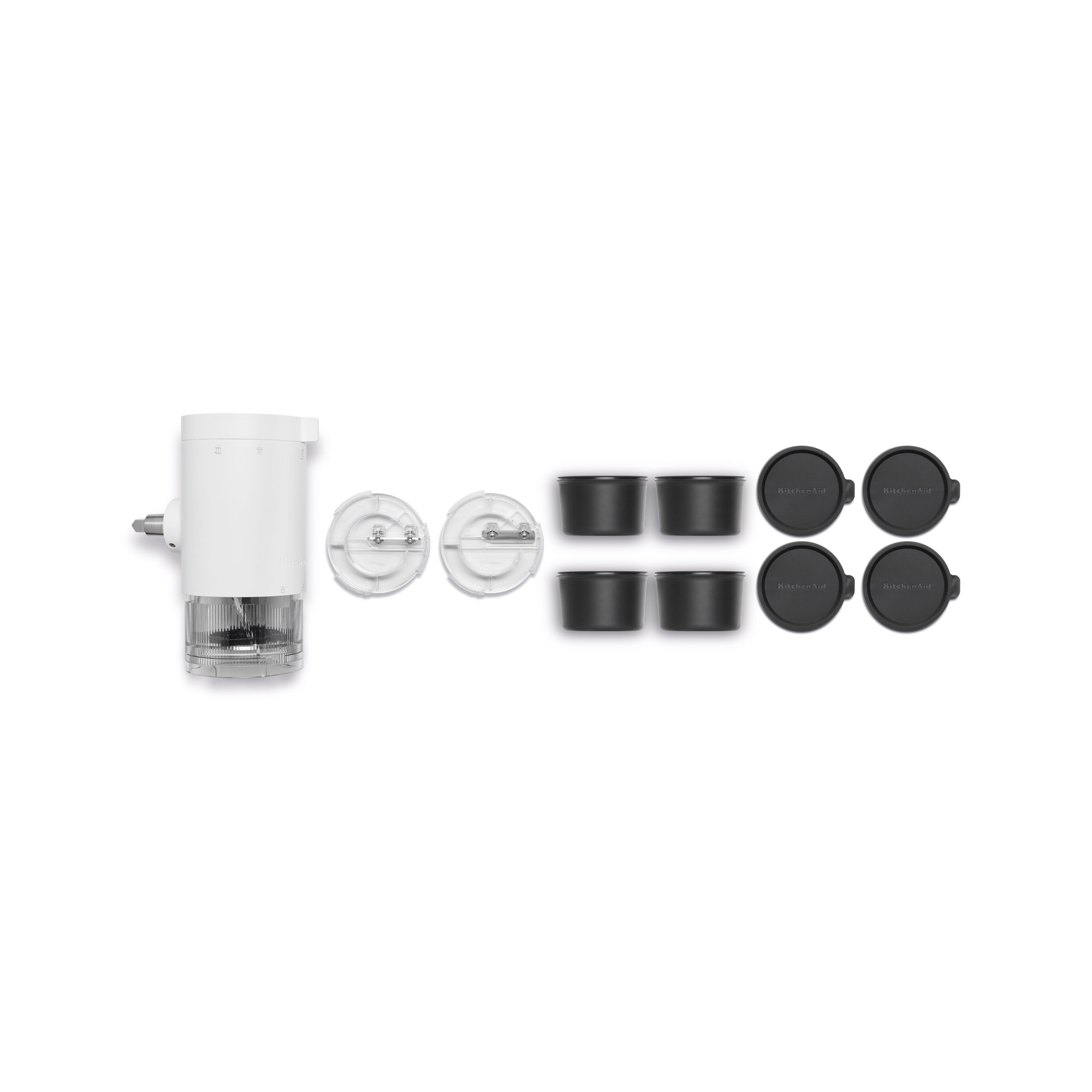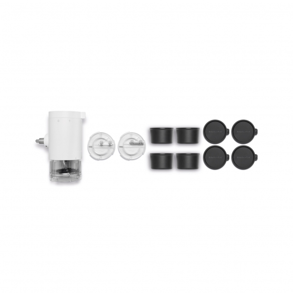 The Ice Crusher for stand mixer is an ideal accessory for all cocktail and chilled beverage lovers, made by KitchenAid with stainless steel blades, a perfect material for kitchen appliances. This accessory is designed to fit all KitchenAid stand mixers: it easily attaches to the mixer's front hub, transforming it into a powerful ice-crushing machine. You can prepare about 500 ml of crushed ice in 60 seconds, and by changing the blades, you can achieve two different types of textures. Additionally, it includes four molds for user creations, and all components that come into contact with food are dishwasher safe, ensuring unparalleled ease of maintenance. This ice crusher for stand mixer is the perfect addition for those looking to expand their kitchen's potential, entering the world of home mixology and creating refreshing and tasty drinks with a professional touch.