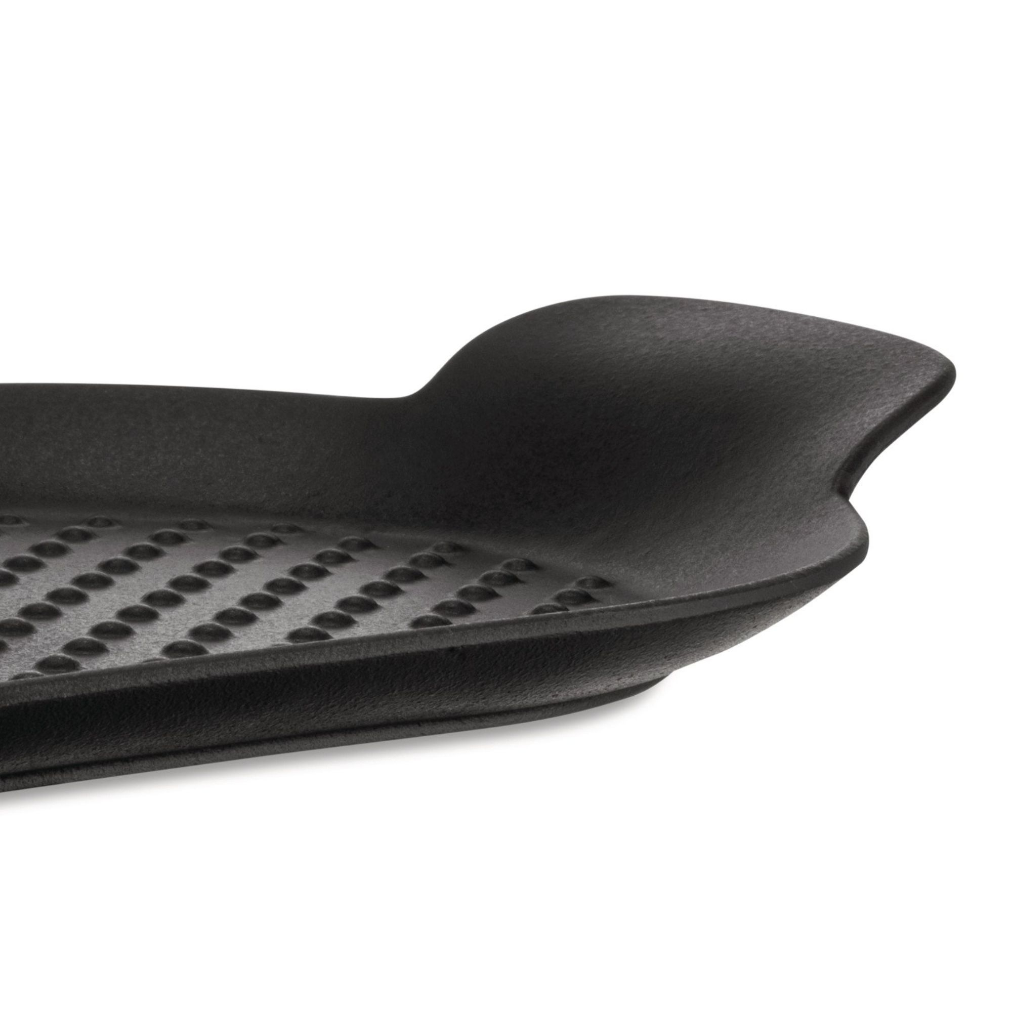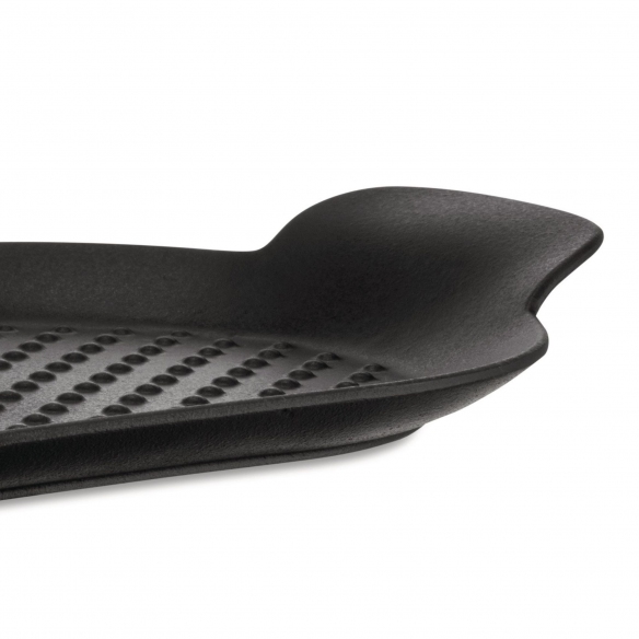 Edo grill pan, made entirely of cast iron. Perfect for the preparation of any type of food, from steaks to vegetables, from fish to potatoes, the Edo grill pan, thanks to the "futuristic" material used for its production, the cast iron, will allow you to cook evenly and therefore in an absolutely flawless. The flared edge is very convenient for removing excess liquids and the magnetic steel bottom makes it also suitable for induction cooking. Designed by Patricia Urquiola for Alessi.