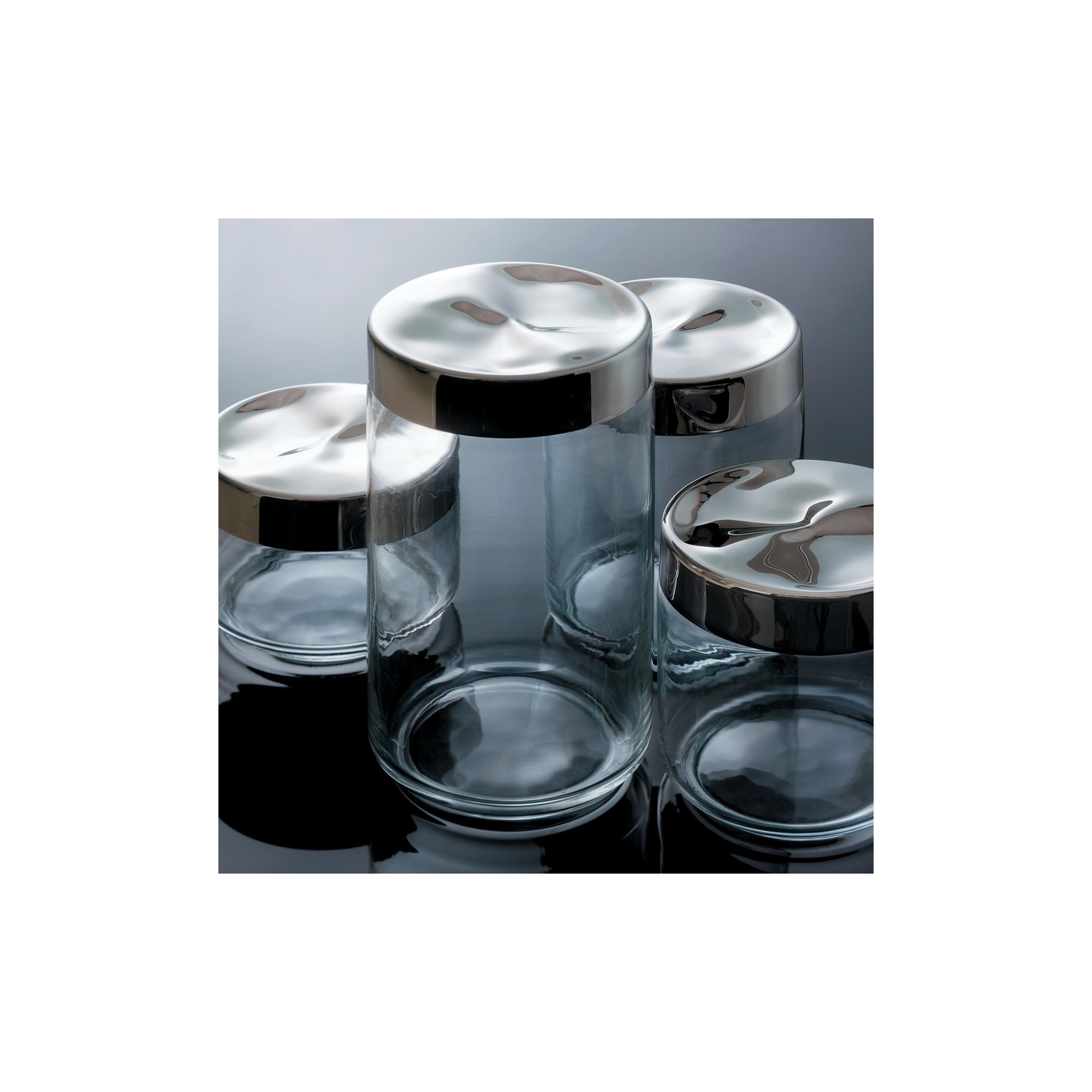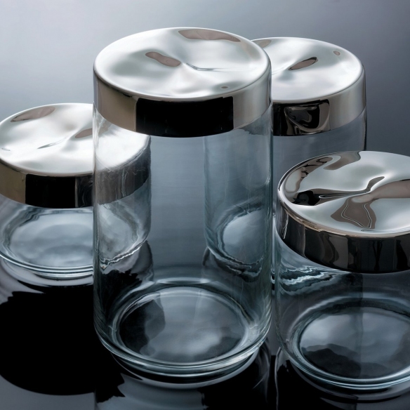 Julieta 75 cl hermetic jar made of glass with lid in 18/10 stainless steel. Compact and linear, the Julieta jar is a very attractive kitchen accessory, its design is simple and compact as regards the glass container, but very particular as regards the lid, which gives the sensation of being crushed or shaped. Perfect to comfortably contain all the essential foods in the kitchen such as sugar, salt or coffee, Julieta is a must-have piece of design in the kitchen! Designed by Lluìs Clotet for Alessi.