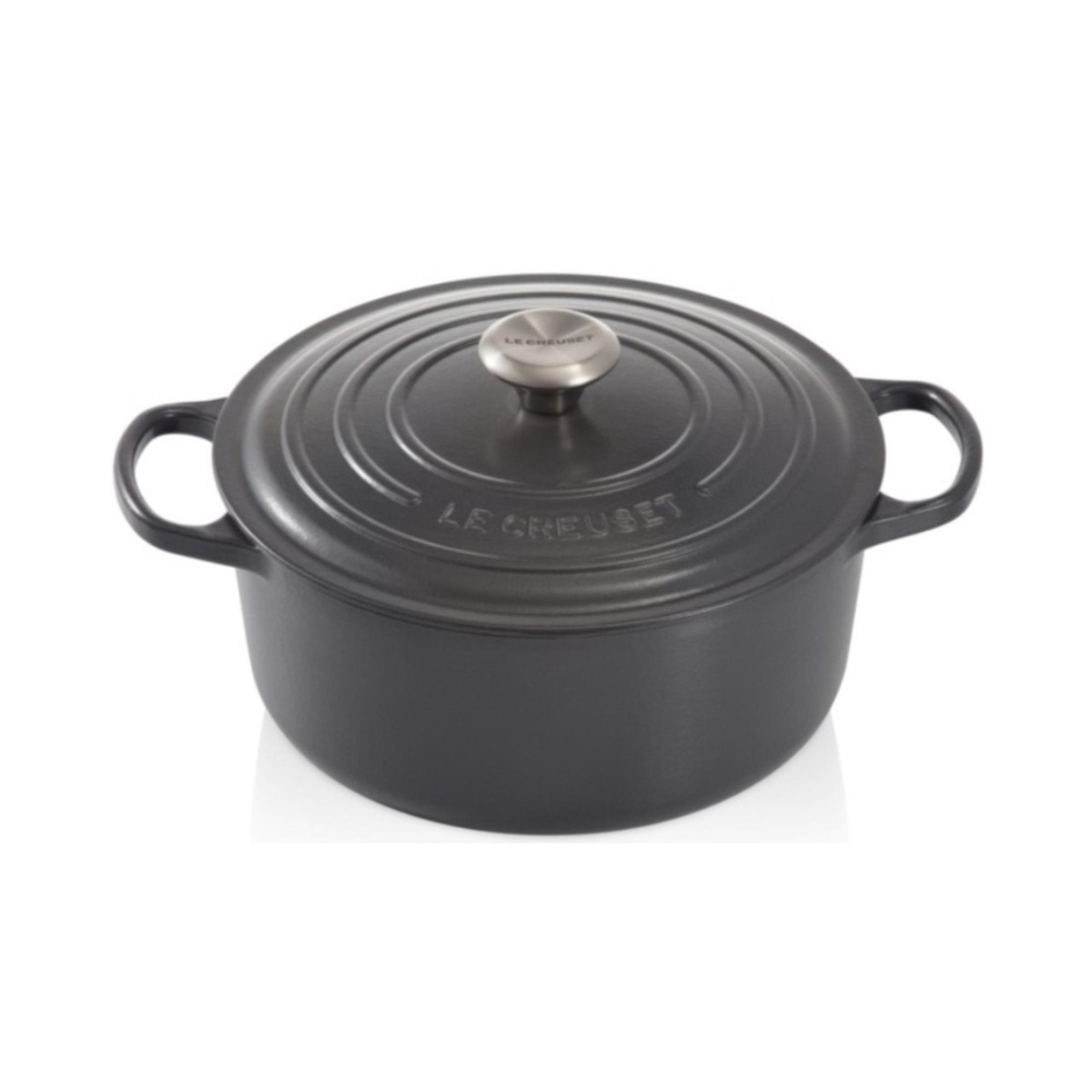 Cocotte Evolution round vetrified cast iron casserole with a diameter of 30 cm available in 2 color finishings: Cherry and Matt Black, made by Le Creuset.