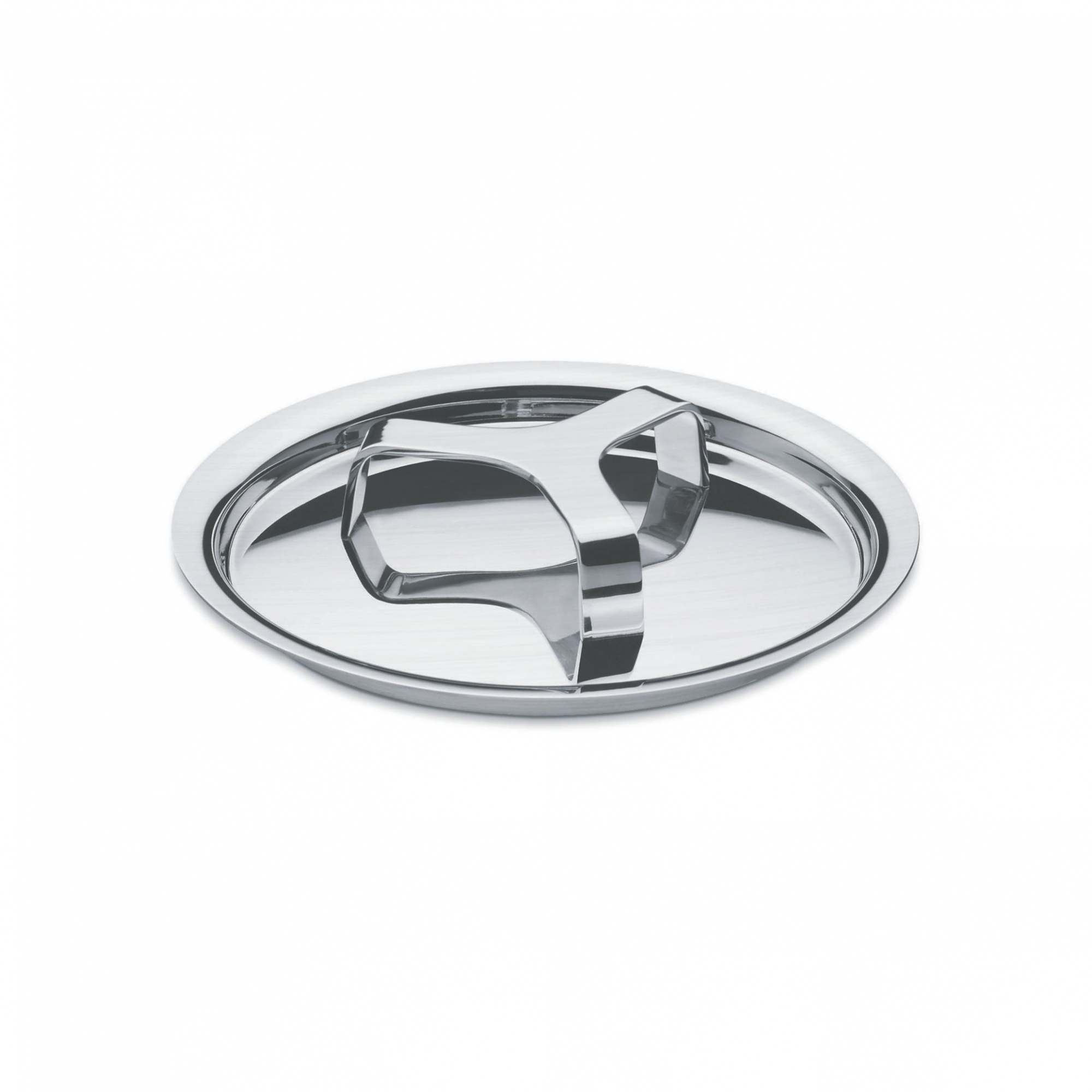Pots & Pans lid with a diameter of 20 cm made of 18/10 stainless steel. Very practical and functional, this lid is perfect to be adapted to the Pots & Pans cookware series. The lid knob, very particular and with a triptych shape, allows easy lifting with the kitchen spoon. Designed by Jasper Morrison for Alessi.