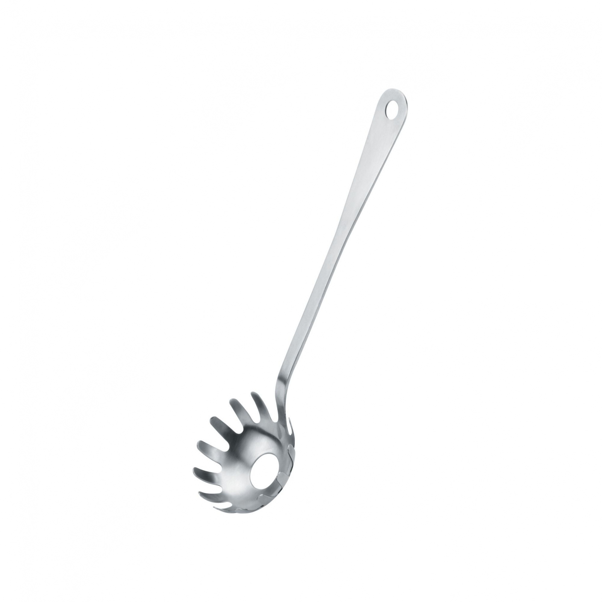 AJM19 spaghetti serving spoon made of 18/10 stainless steel. Indispensable object in the kitchen, this spoon ideal for skimming, draining liquid food or hot oil and of course spaghetti. Linear and compact, AJM19 spaghetti serving spoon is the perfect partner to have maximum performances! Designed by Jasper Morrison for Alessi.