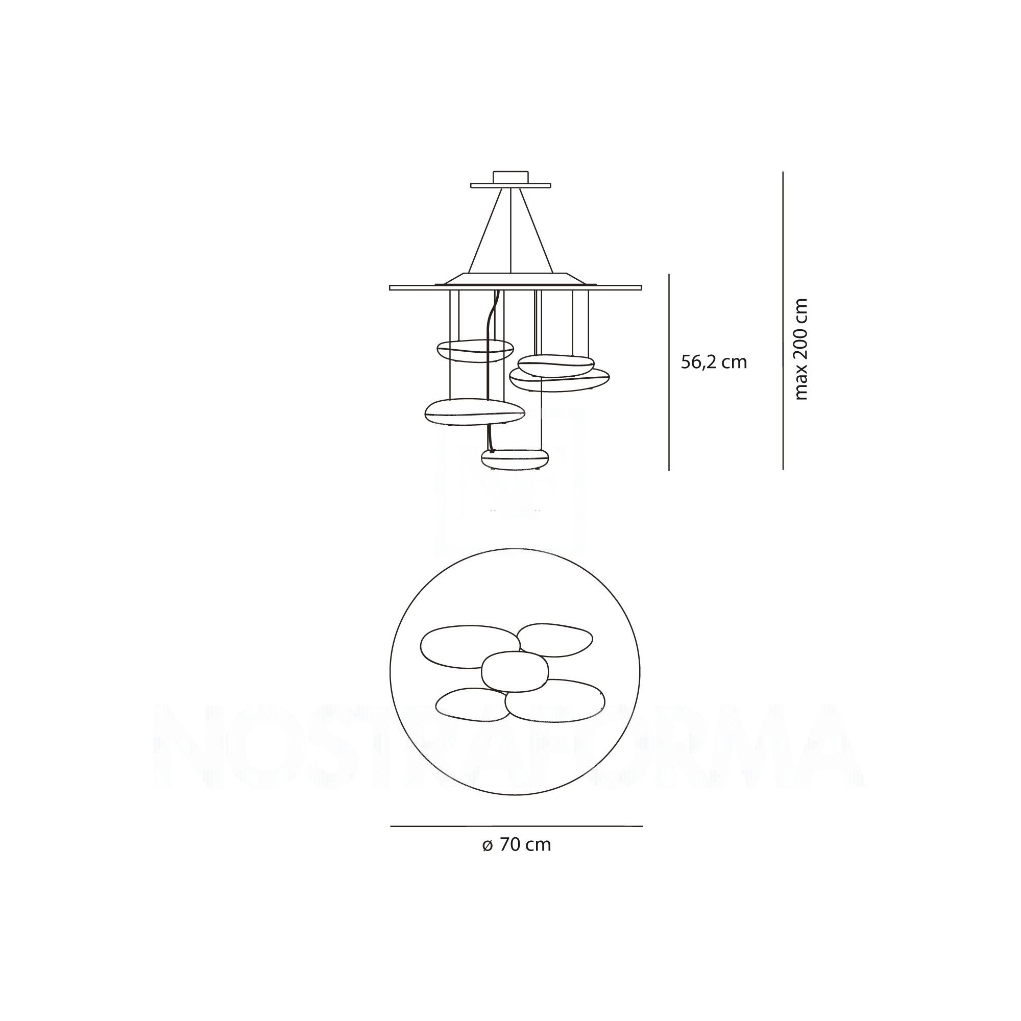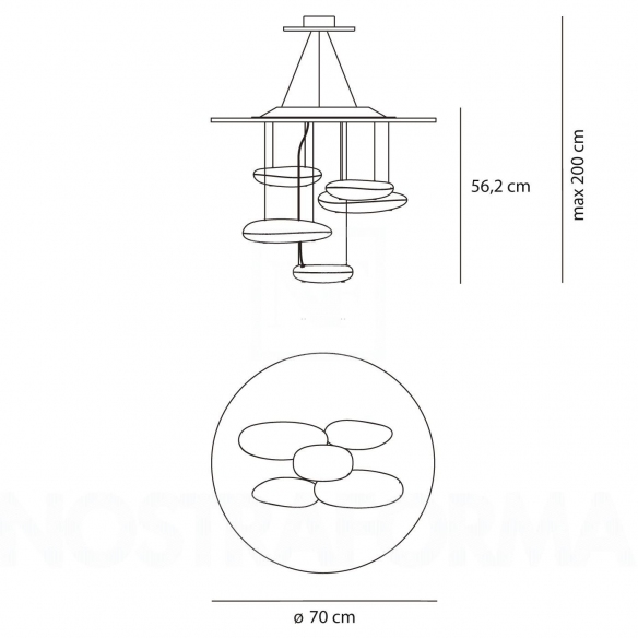 Dimensions: Diameter 70 cm, Height 56 cm, Min ceiling height 96 cm max 261 cm
