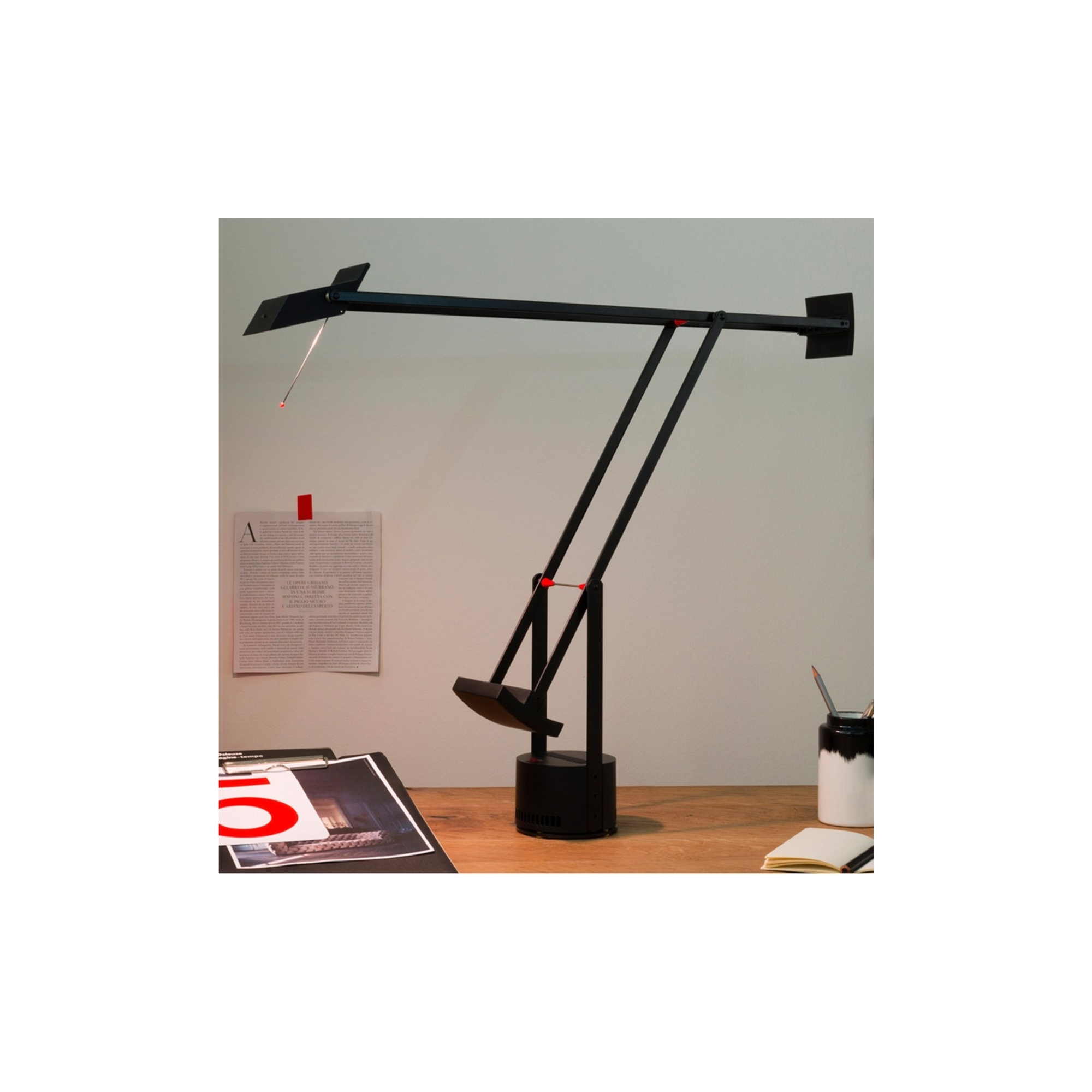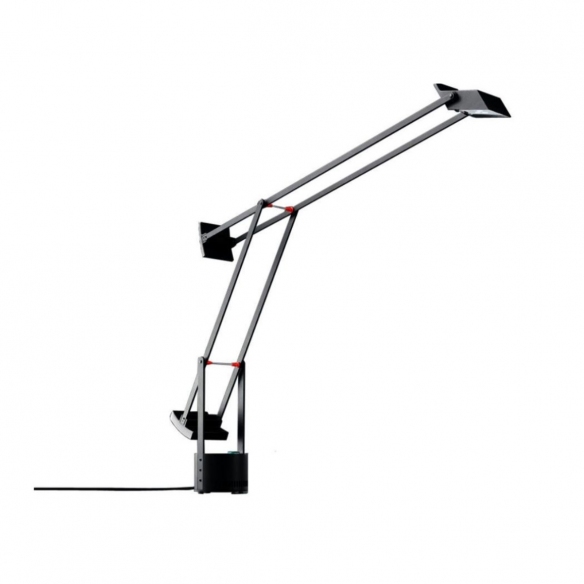 Tizio LED table lamp made of polycarbonate and aluminum, adjustable in height and length, and dimmable via Microswitch dimmer. Modern in its graphic aspect and surprising in its functionality, the Tizio LED table lamp represents a very particular direct but adjustable lighting solution. Awarded the Compasso D'Oro in 1979, this lamp is perfect on a desk. LED 6.75W – 220/240V – 468lm – CRI 90. Designed by Richard Sapper for Artemide.