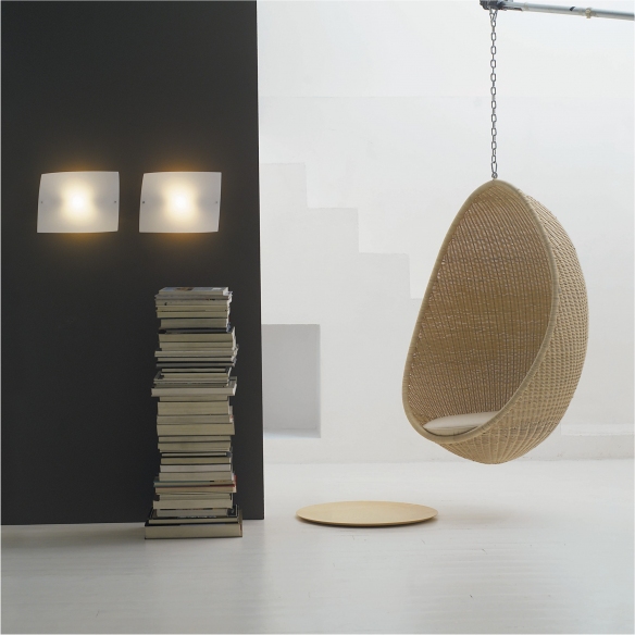 Satin blown glass wall light, light source equipped with R7s lampholder for halogen bulbs up to 120 W or LED Retrofit, designed by Carlo Urbinati and Alessandro Vecchiato for Foscarini Dimensions Width 48 cm, Height 38 cm, Thickness 10 cm Materials Blown glass, Metal