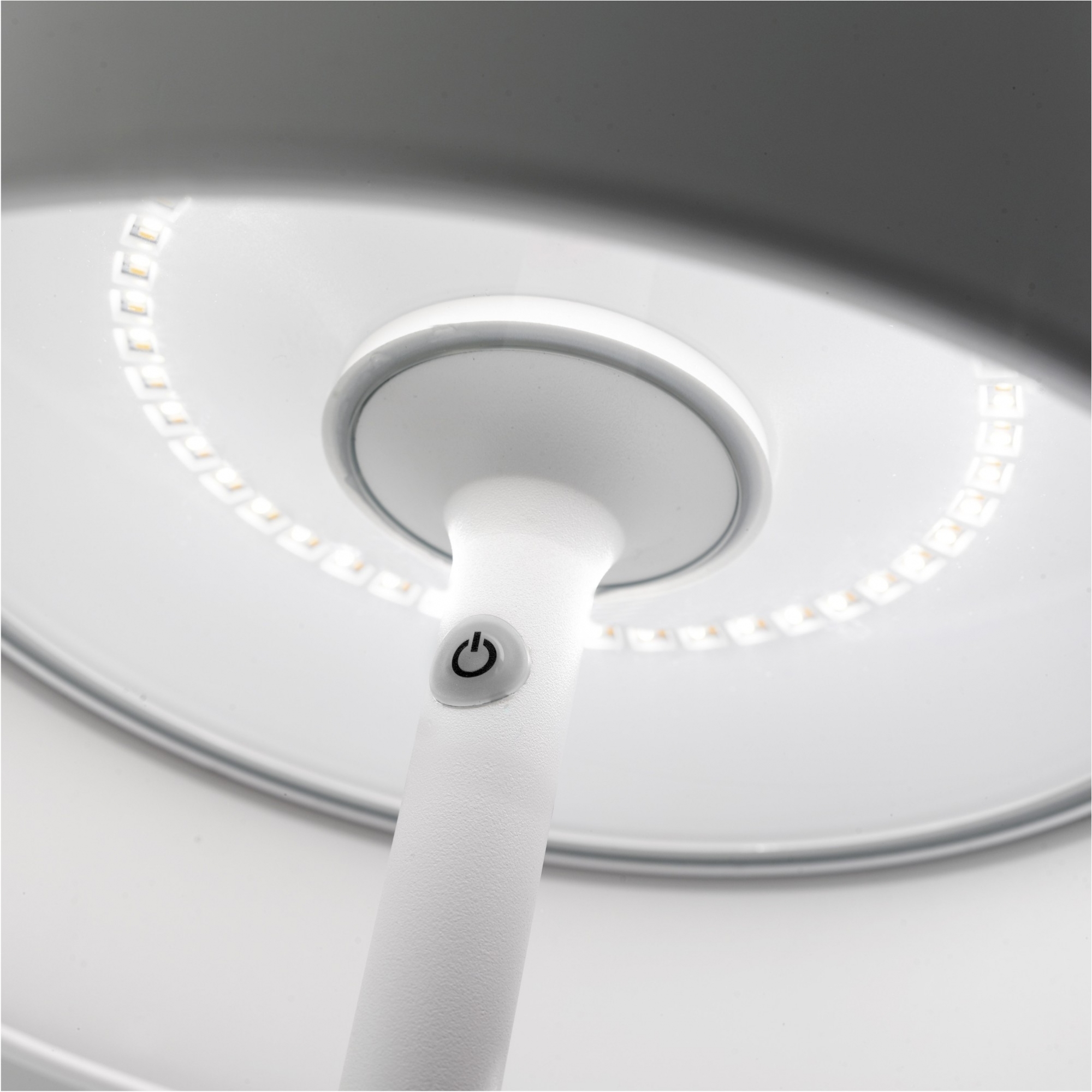 Floor and table rechargeable lamp with painted aluminium body and polycarbonate diffuser. Designed by Federico De Majo for Zafferano.